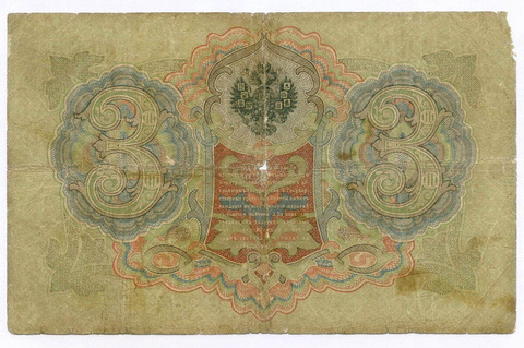 Кредитный билет 3 рубля 1905 год. Управляющий Коншин, кассир Морозов РФ 894217. G-VG
