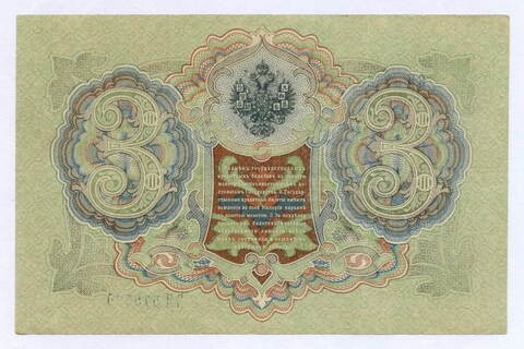 Кредитный билет 3 рубля 1905 год. Управляющий Шипов, кассир Гаврилов ВЯ 575569. XF