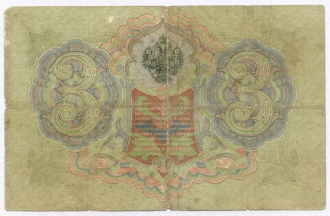 Кредитный билет 3 рубля 1905 год. Управляющий Тимашев, кассир Шагин ДХ 858726. VG