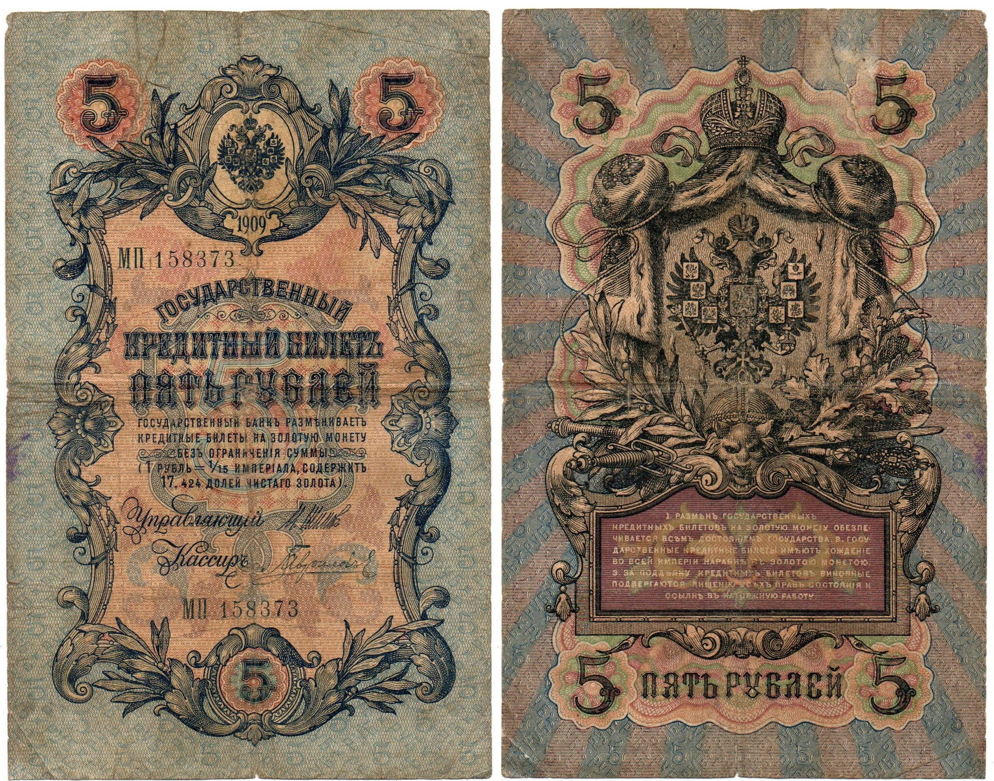 Кредитный билет 5 рублей 1909 МП 158273 Poor