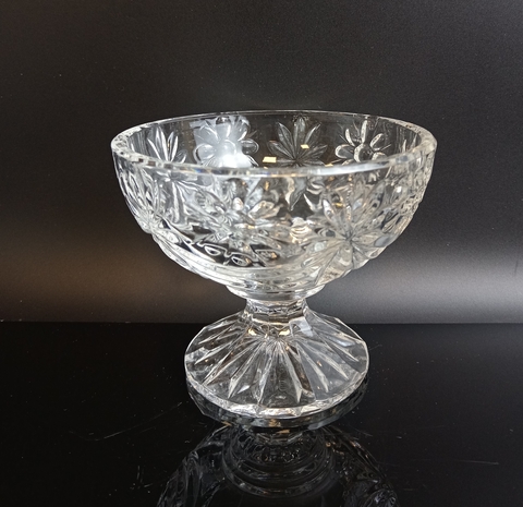 Креманка хрустальная алмазная грань, резные цветы, винтаж СССР 1970-1990 гг. Высота -11 см, диаметр - 13 см. Присутствуют следы использования- состояние на фото