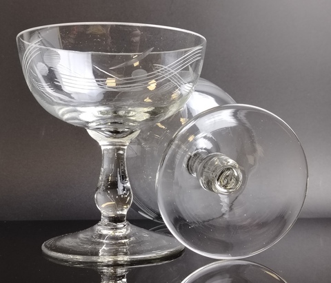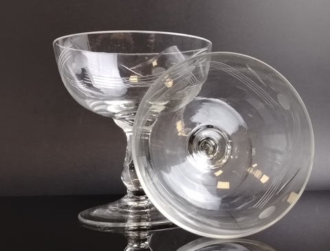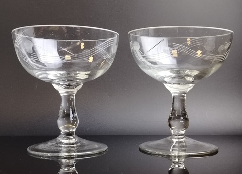 Креманки на ножке 2 штуки, вазочки под мороженое, стекло, резной декор, винтаж СССР 1970-1990 гг. Высота - 11 см. Присутствуют следы использования - состояние на фото