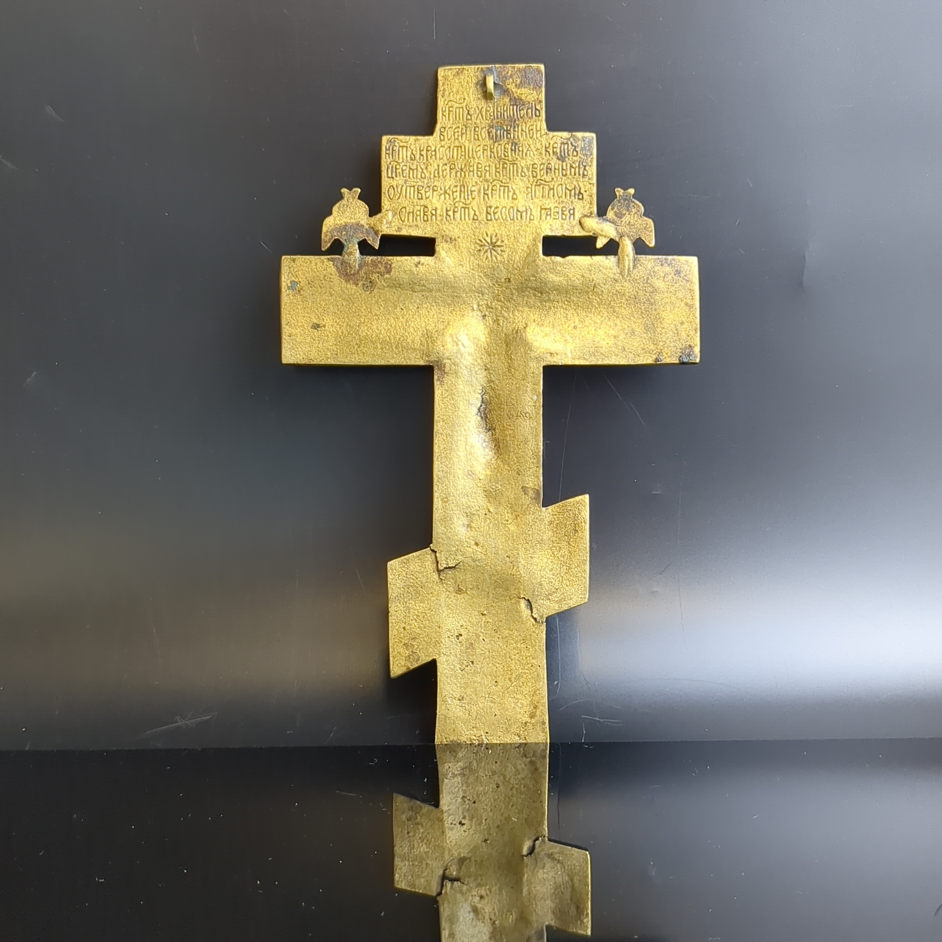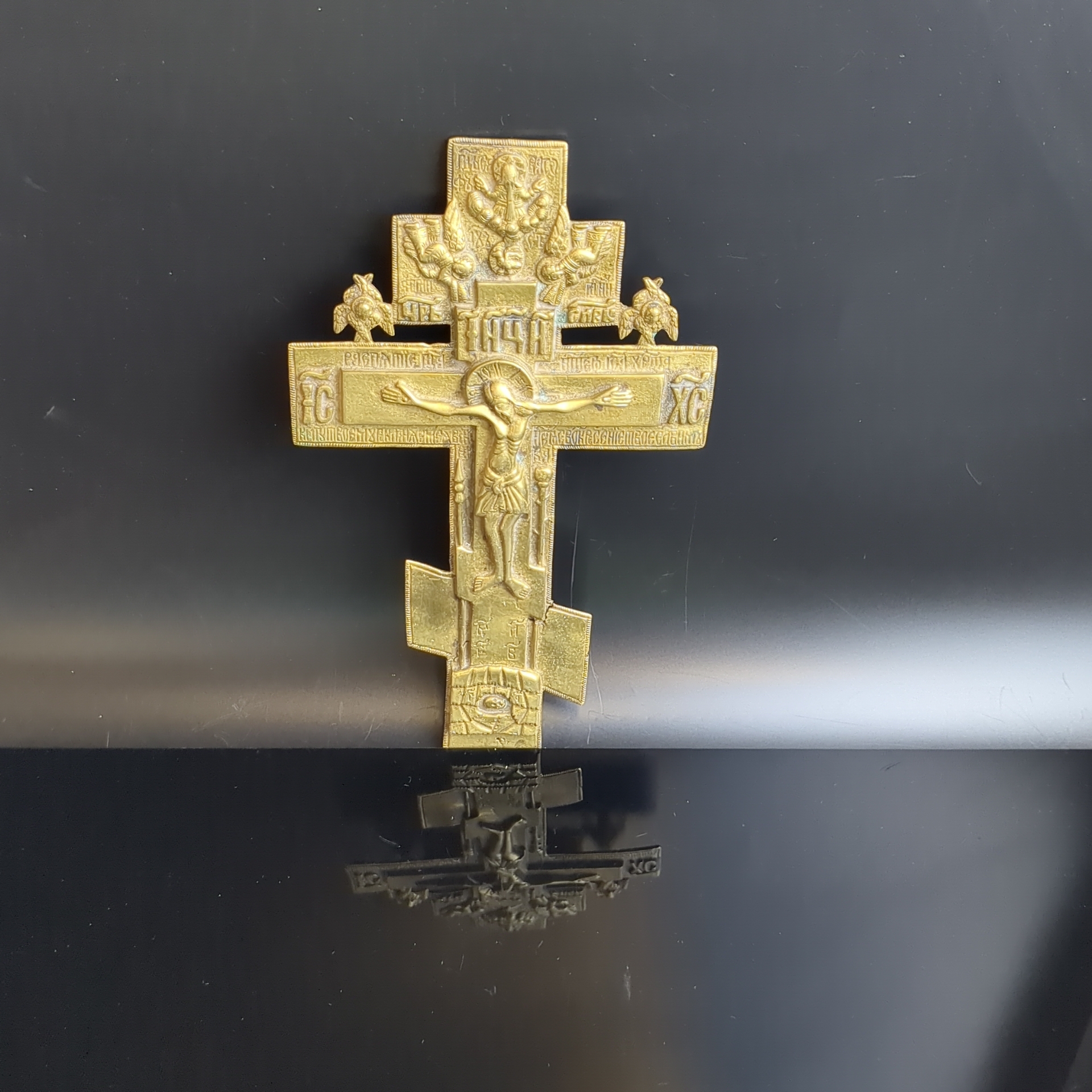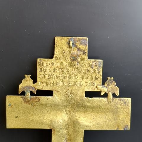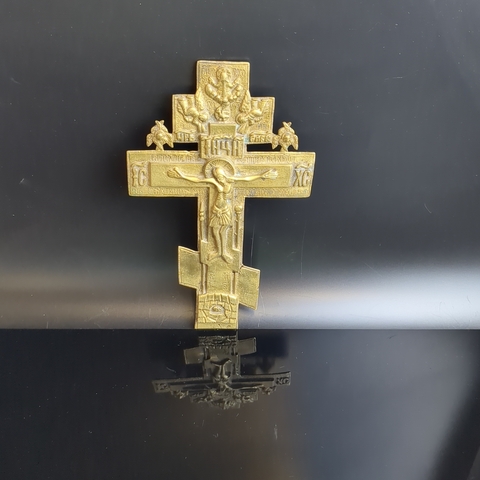 Крест напрестольный 19 век "Распятие Христово" с херувимами, 20,5 см. бронза, литье, Российская Империя, 1850-1890 гг. Состояние на фото