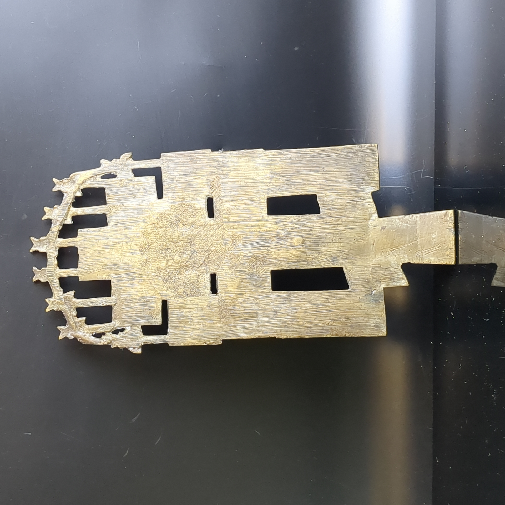 Крест 19 века Распятие Иисуса Христа с предстоящими и избранными иконами, навершие с херувимами, бронза, литье, цветные эмали, Российская Империя, 1850-1890 гг. Размер 26,3 х 12,5 см.