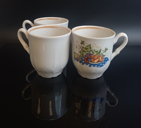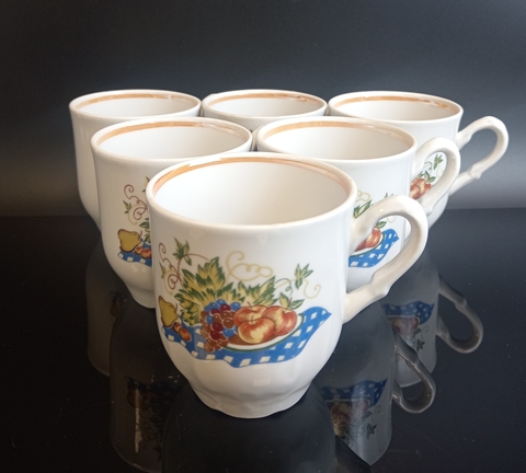 Кружечки фарфоровые набор из 6 штук, роспись фрукты, позолота, 8 см, 250 мл., Добруш ФЗ, винтаж СССР 1978-1991 гг. Присутствуют следы использования - состояние на фото
