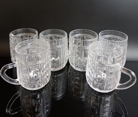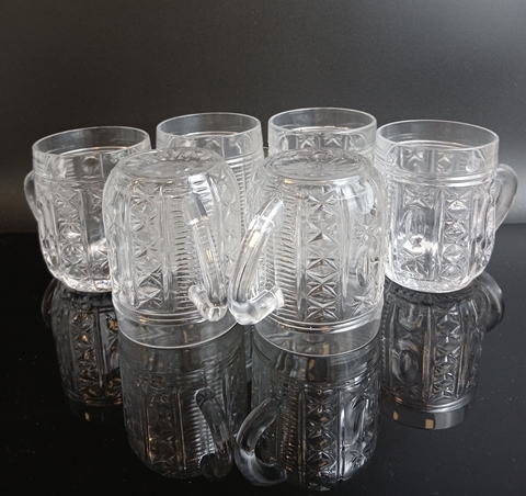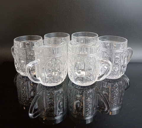 Кружки, бокалы пивные бочонки набор из 6 штук, хрусталь, винтаж, алмазная грань, СССР 1960-1990 гг. Присутствуют следы использования - состояние на фото