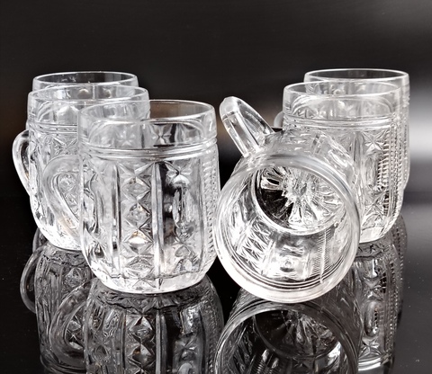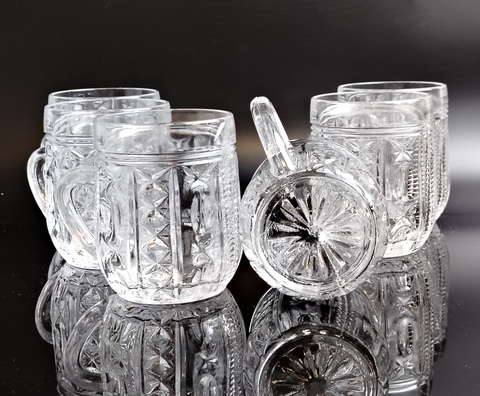 Кружки, бокалы пивные бочонки набор из 6 штук, хрусталь, винтаж, алмазная грань, СССР 1960-1990 гг. Присутствуют следы использования- состояние на фото