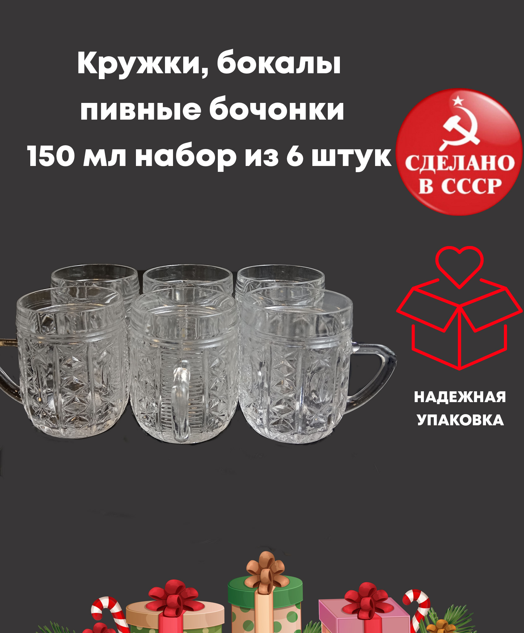 Кружки, бокалы пивные бочонки 150 мл. набор из 6 штук, хрусталь, винтаж, алмазная грань, СССР 1960-1990 гг. Присутствуют следы использования - состояние на фото