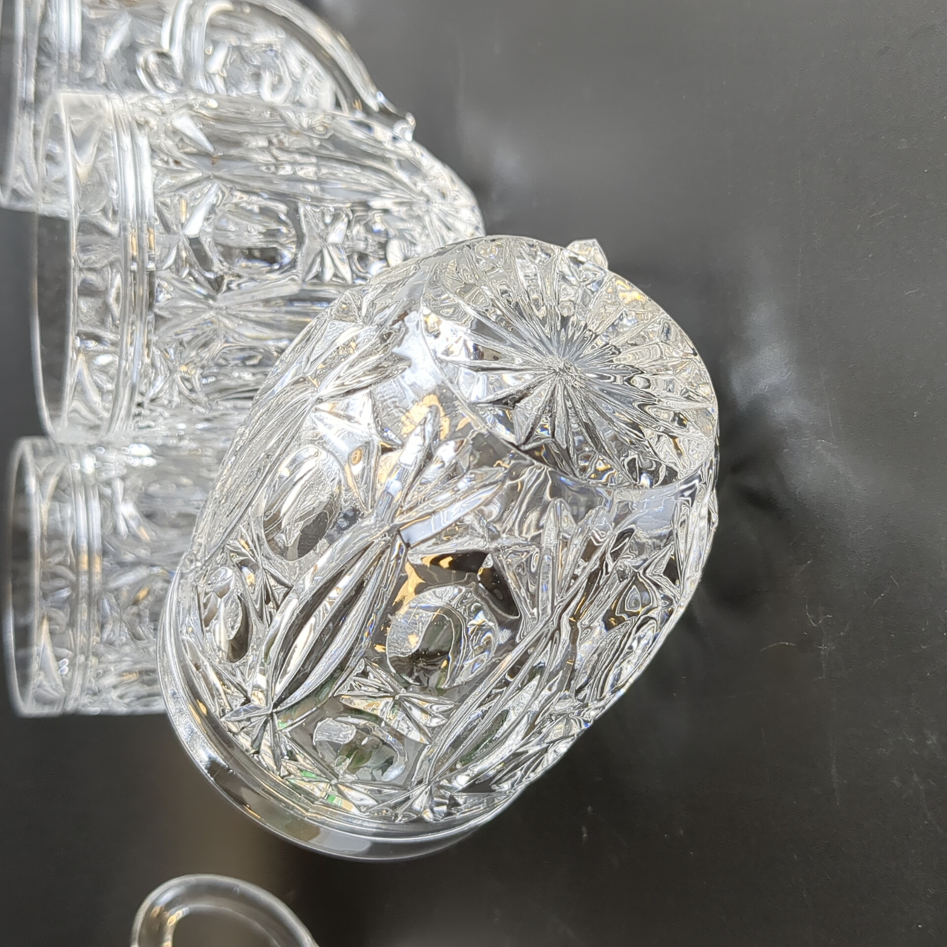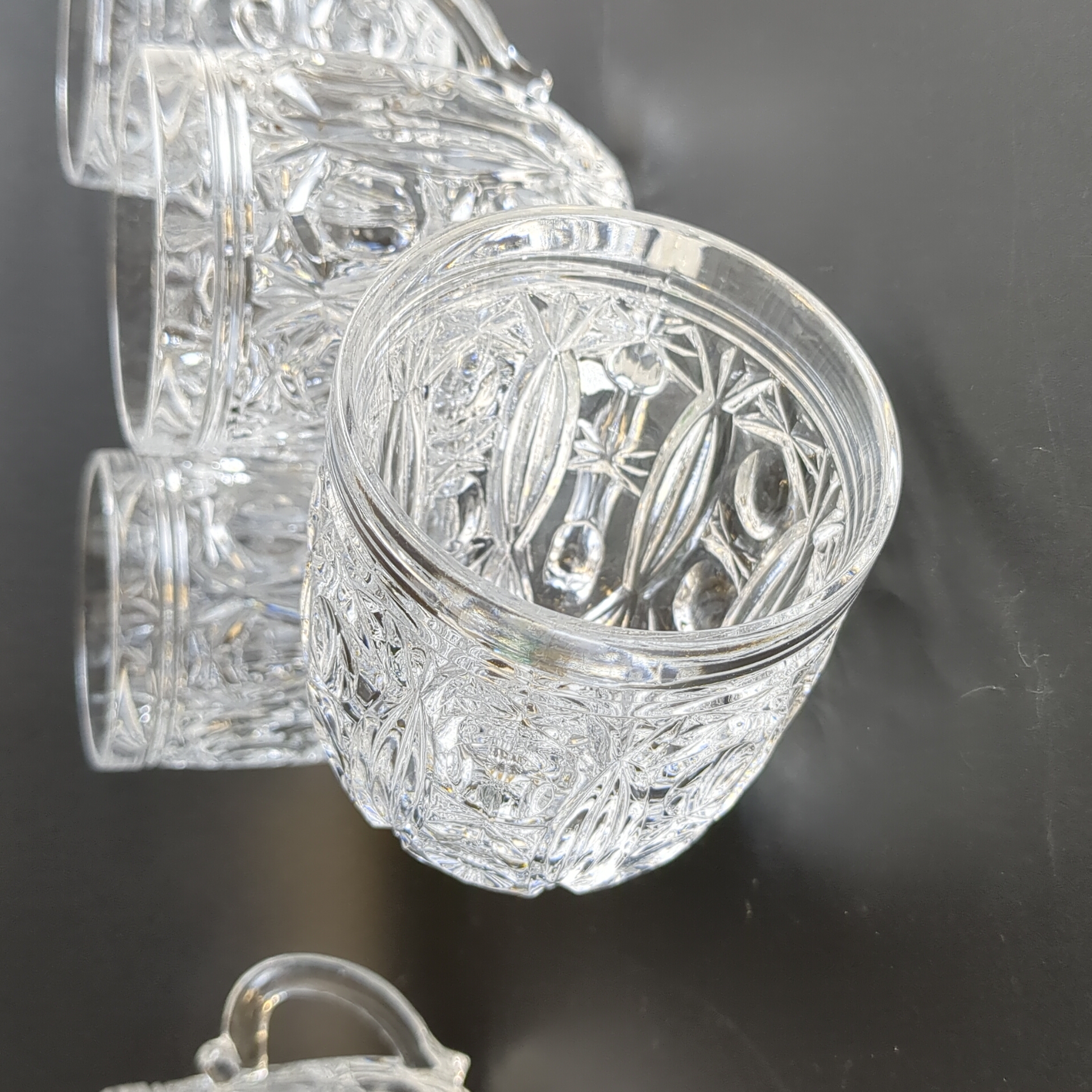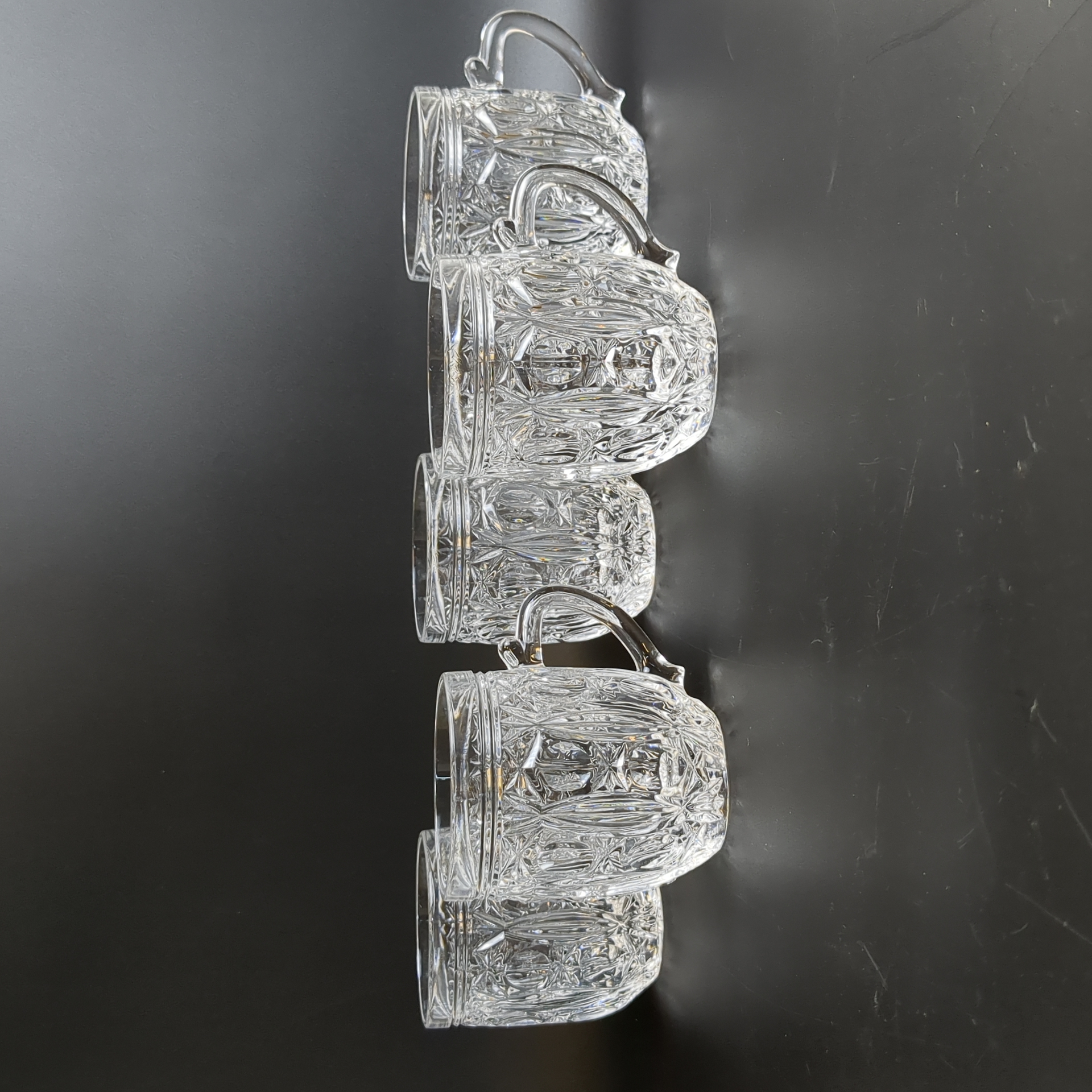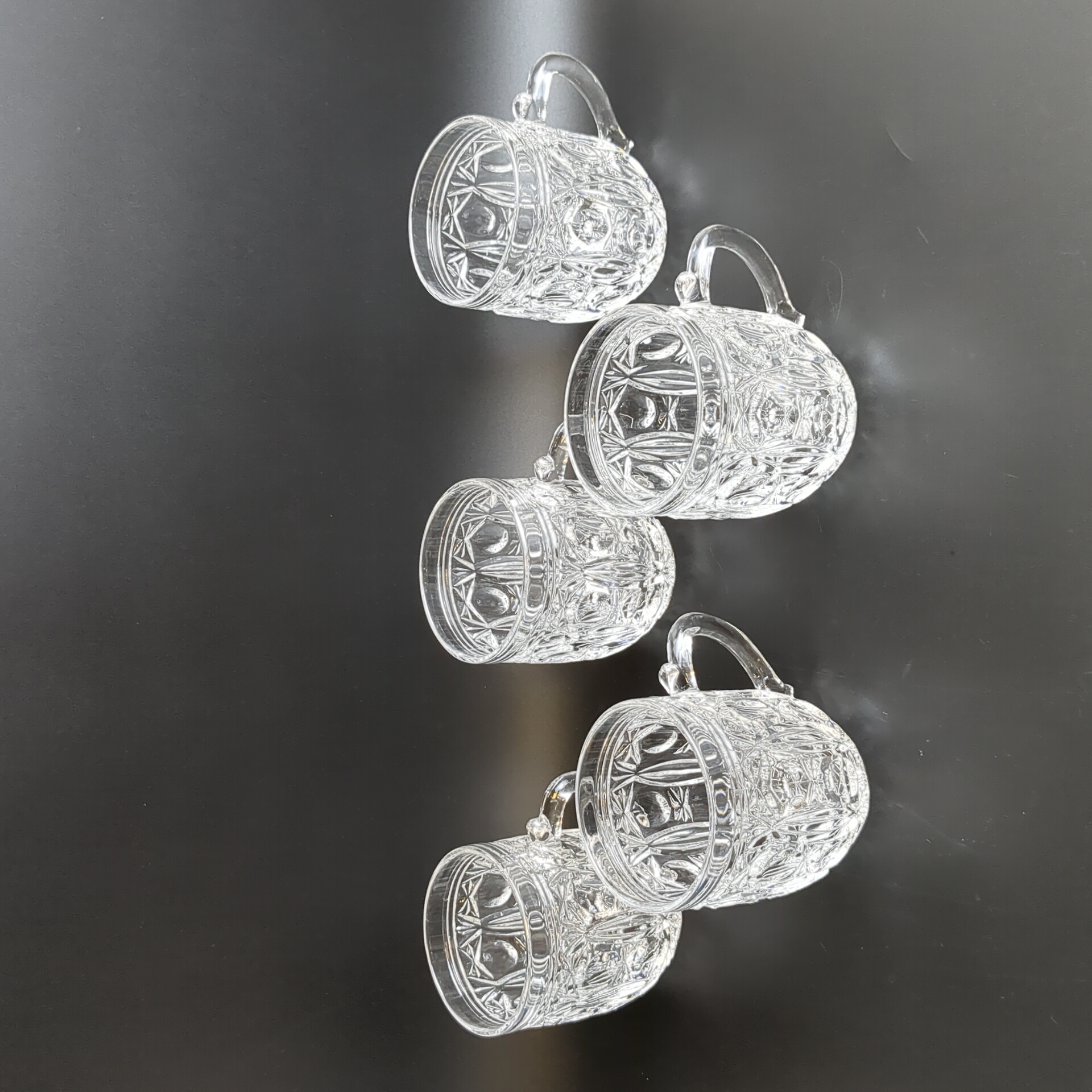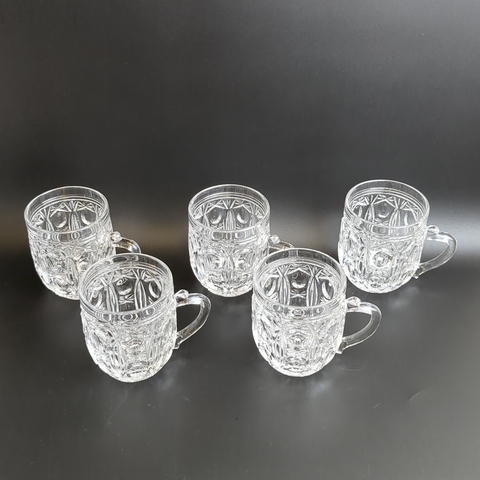 Кружки, бокалы пивные, бочонки набор из 5 штук, хрусталь, винтаж, алмазная грань, СССР 1960-1990 гг. Высота - 9 см.