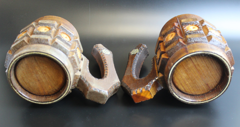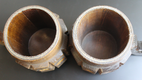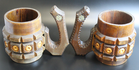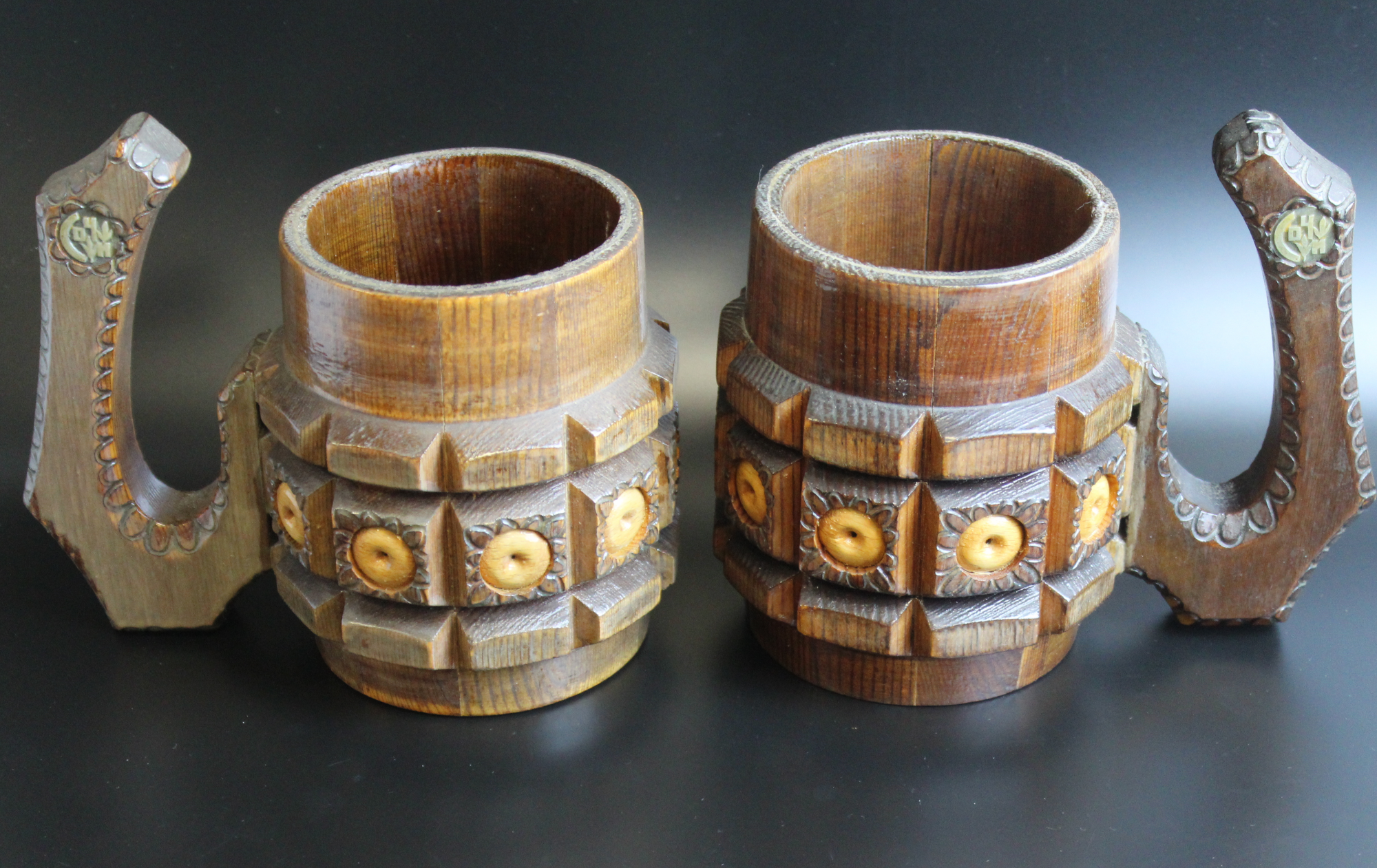 Кружки пивные 2 шт. Дерево. Орнамент. Резьба. 50-е гг. Ручная работа. Винтаж СССР. 13 см XF