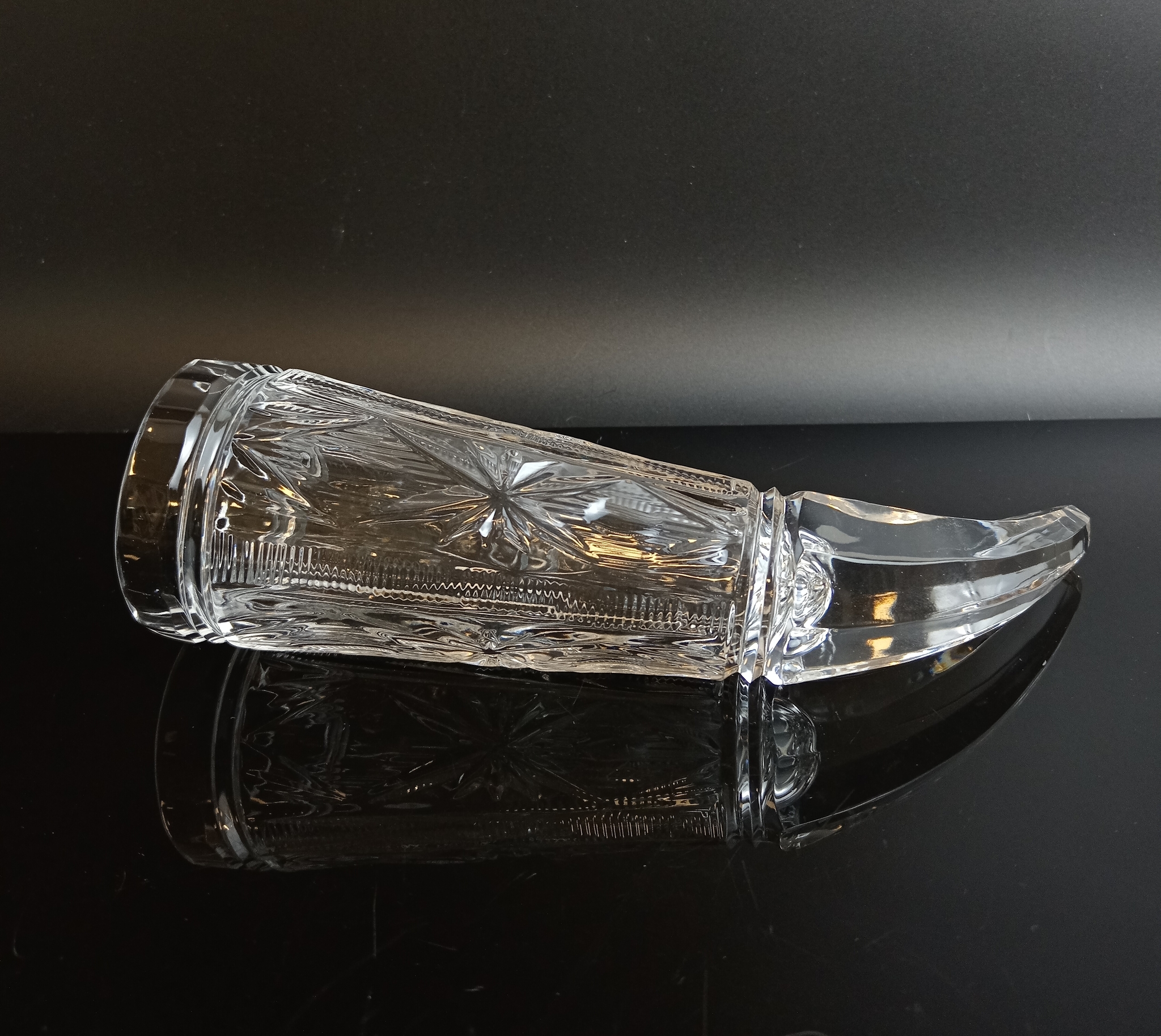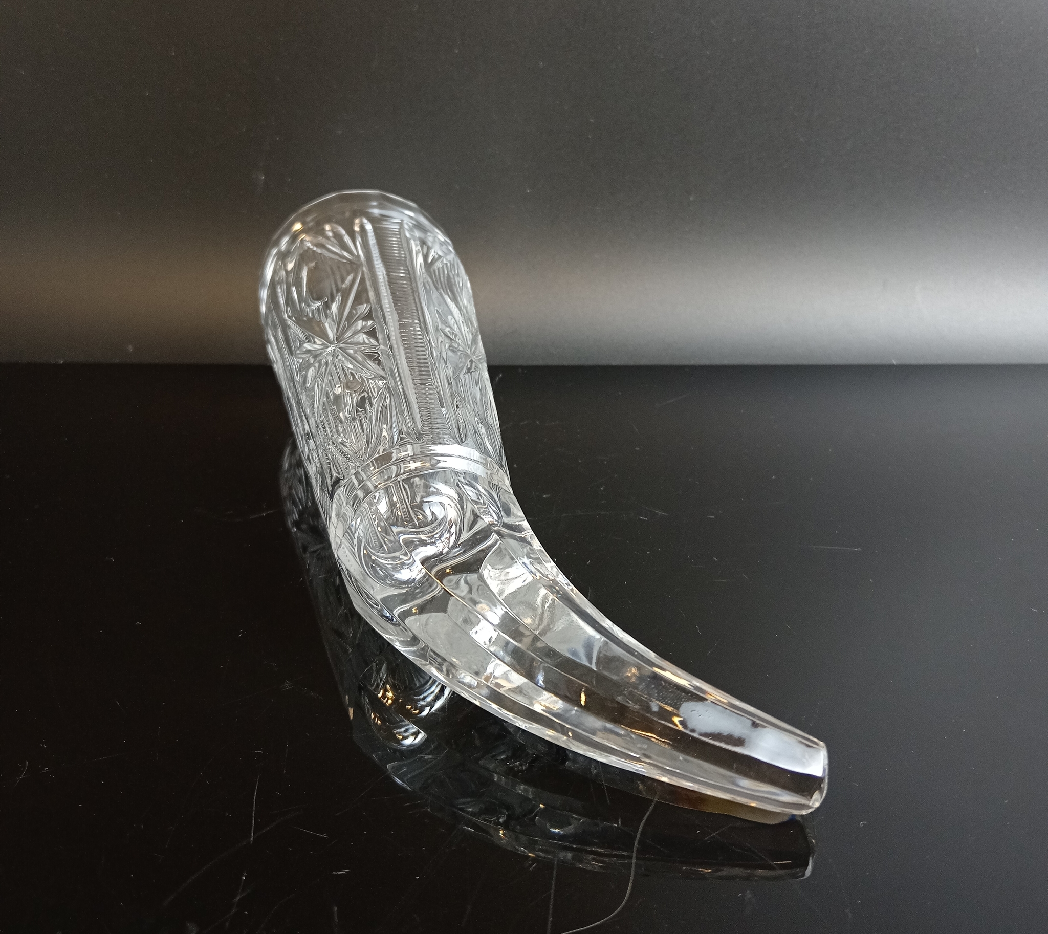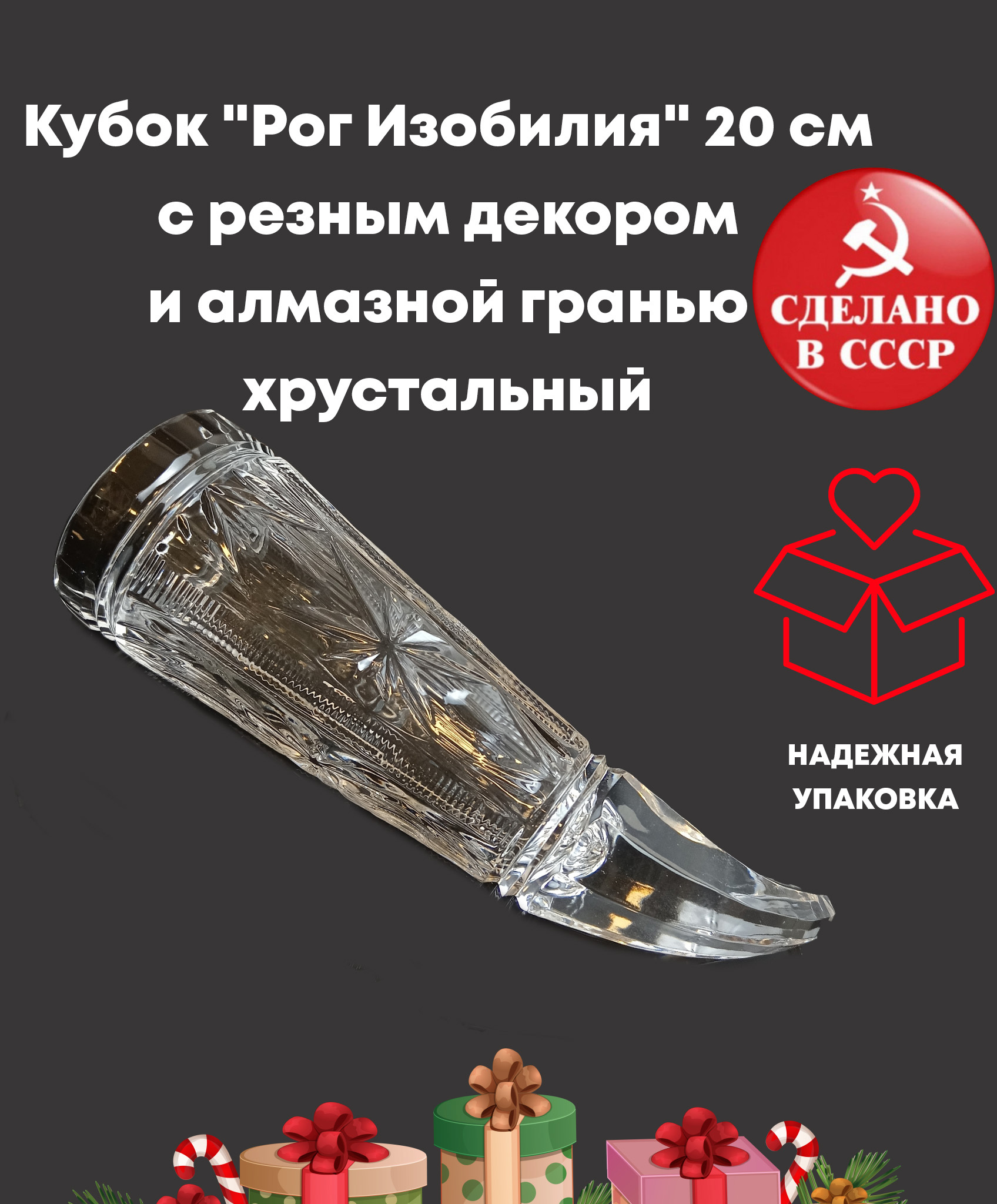 Кубок "Рог Изобилия" длина- 20 см с резным декором и алмазной гранью хрустальный , СССР 1970-1990 гг.