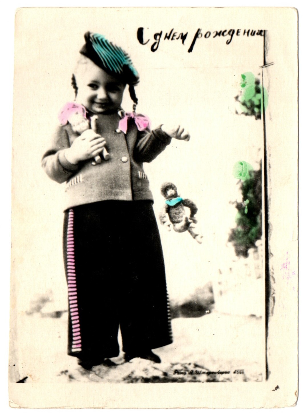 Кустарная открытка 50-х гг. С Днем Рождения XF
