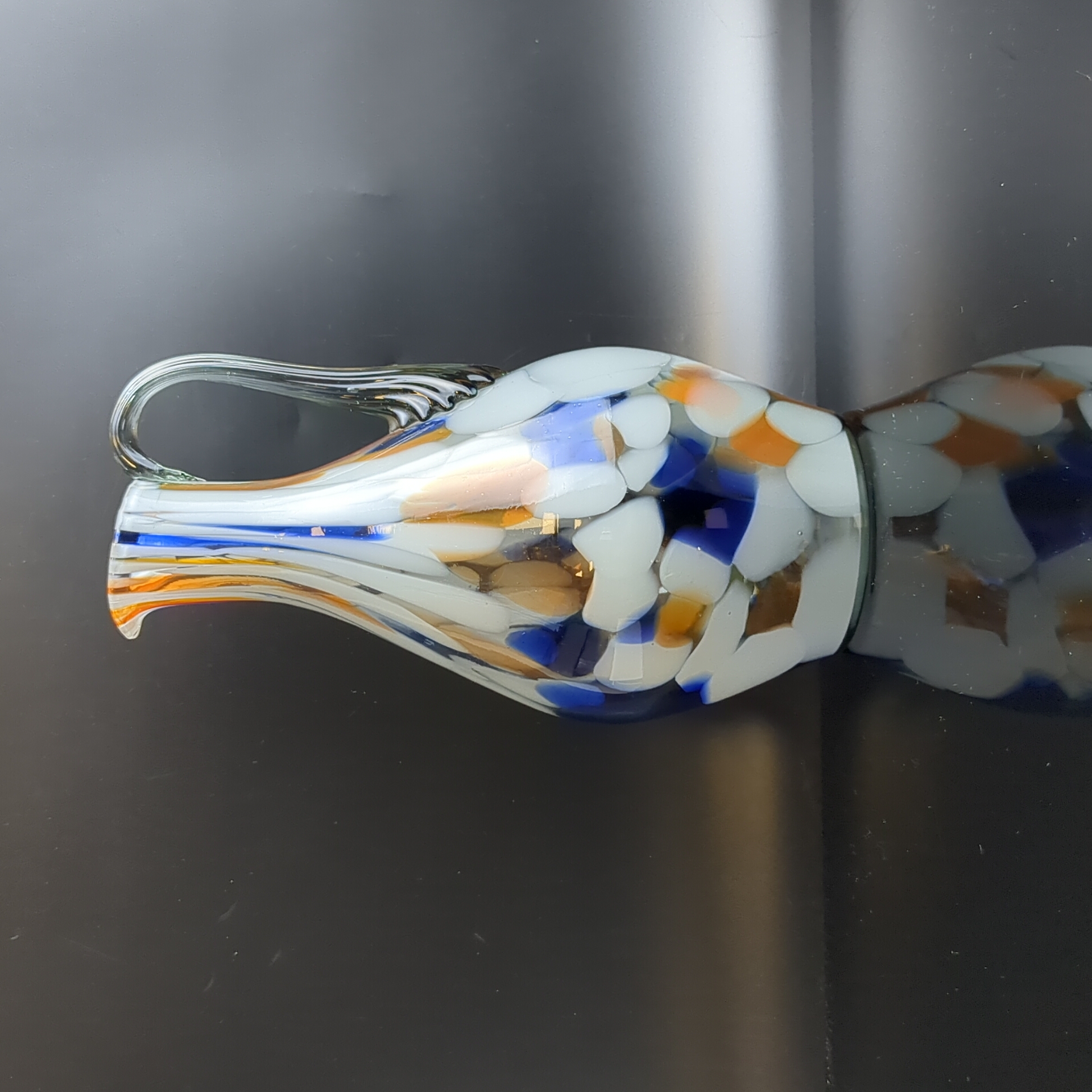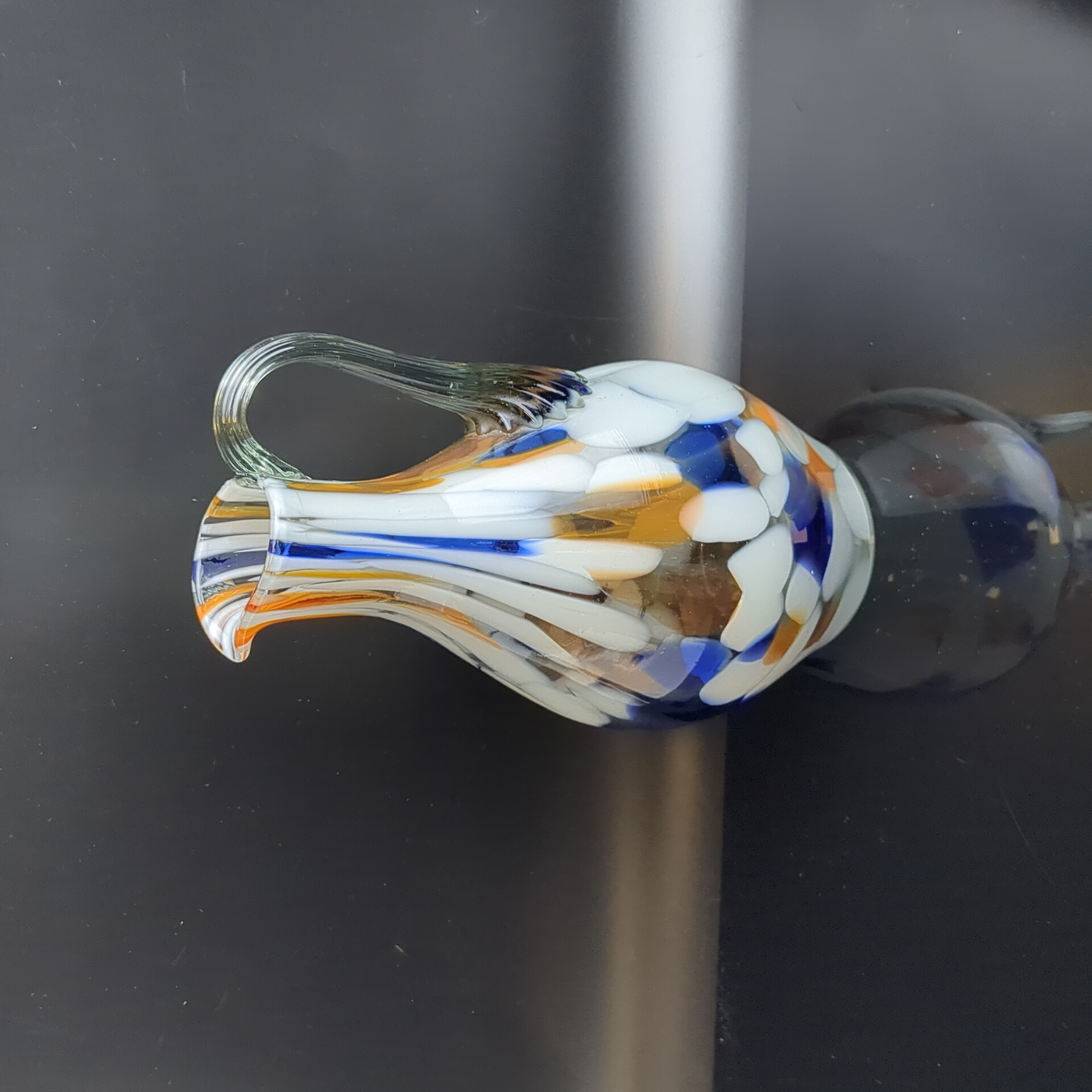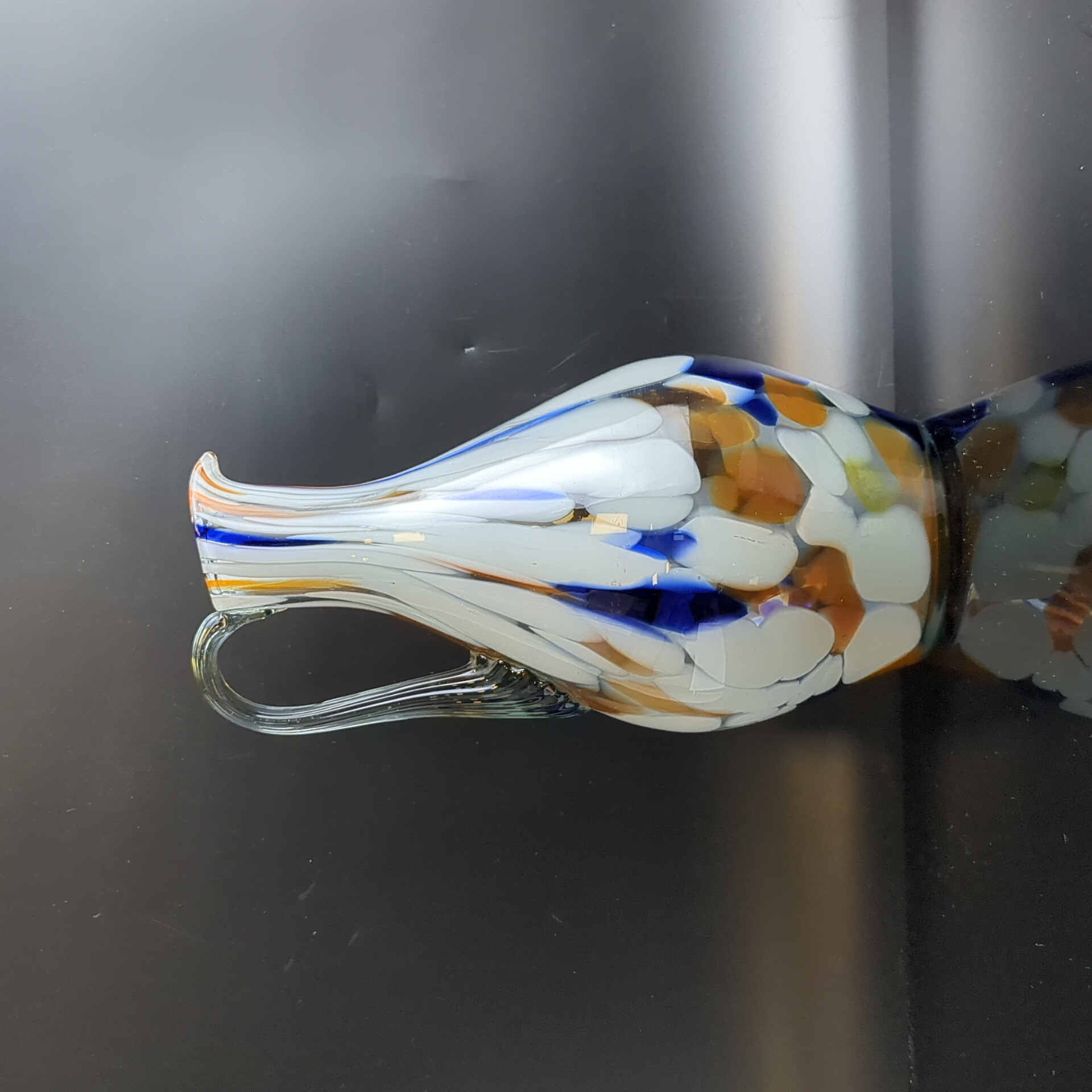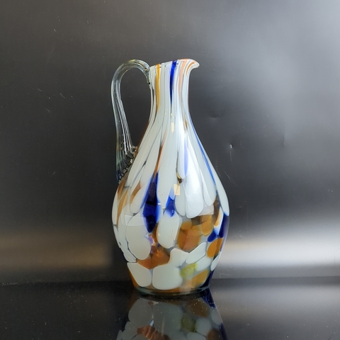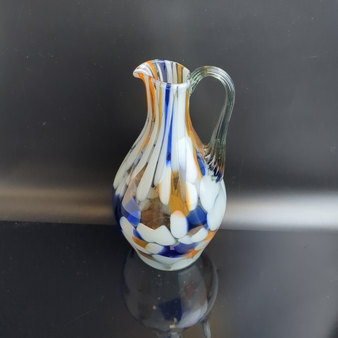 Кувшин с ручкой разноцветное стекло гутная техника, узкое горлышко, высота - 21 см, винтаж СССР 1970-1990 гг. Состояние на фото