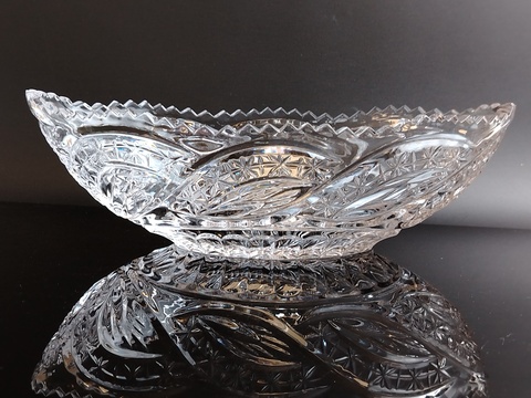 Ладья конфетница хрустальная - винтажная роскошь в вашем доме. Длина - 25.5 см, высота - 8 см. Состояние на фото.