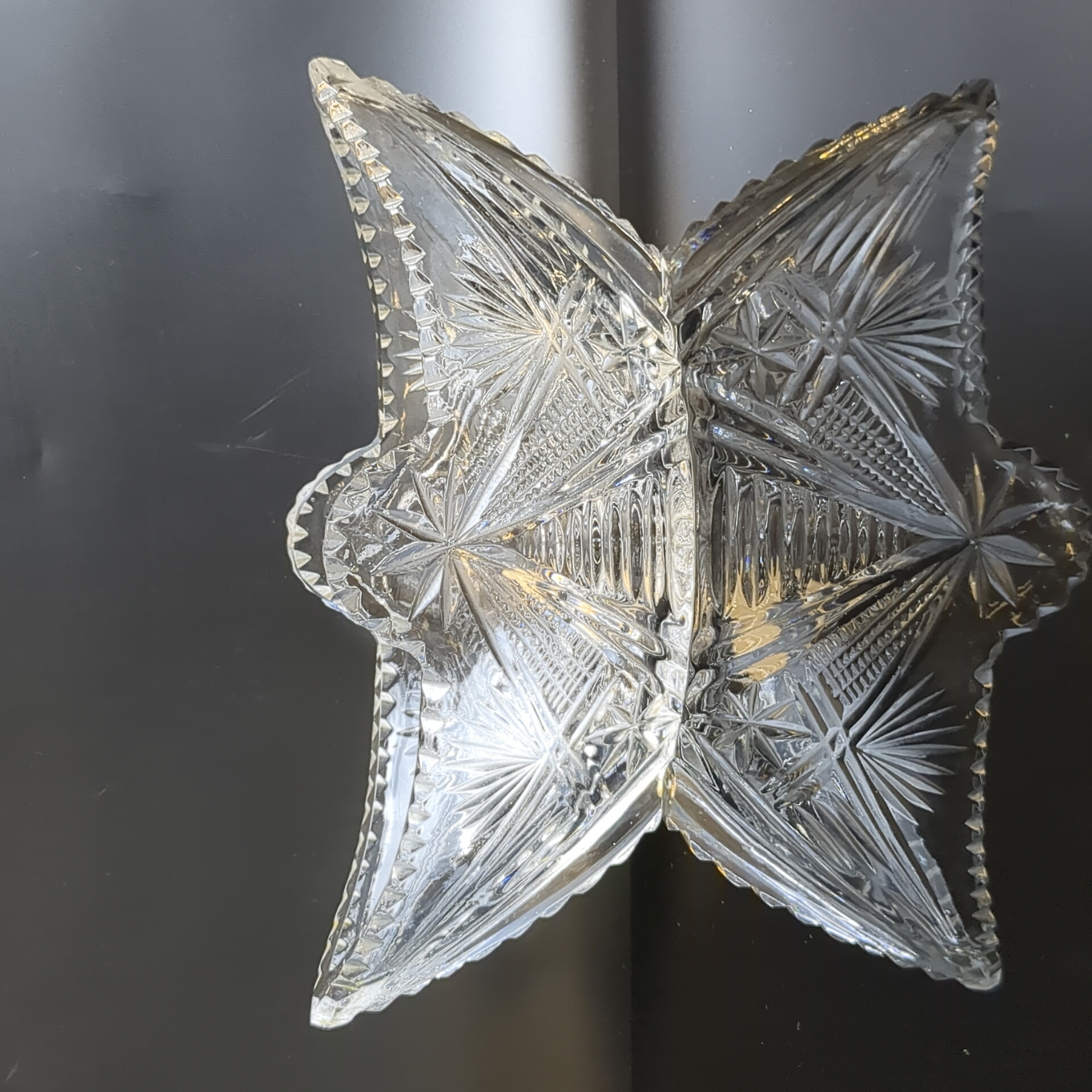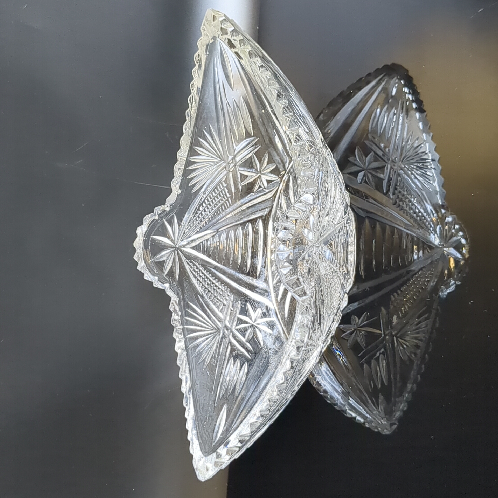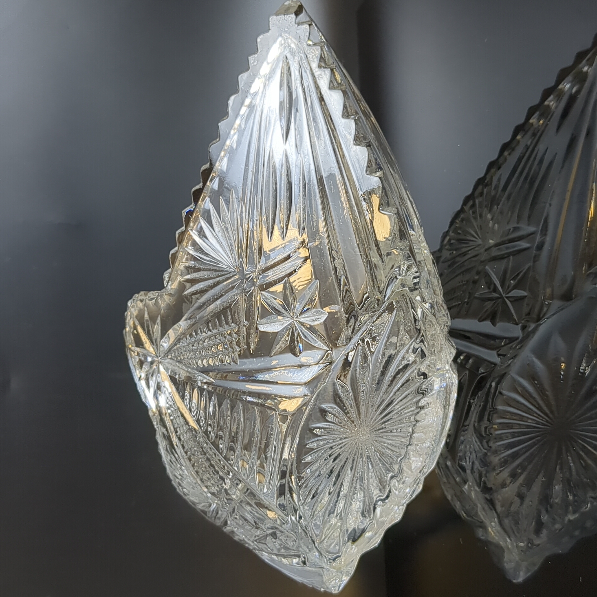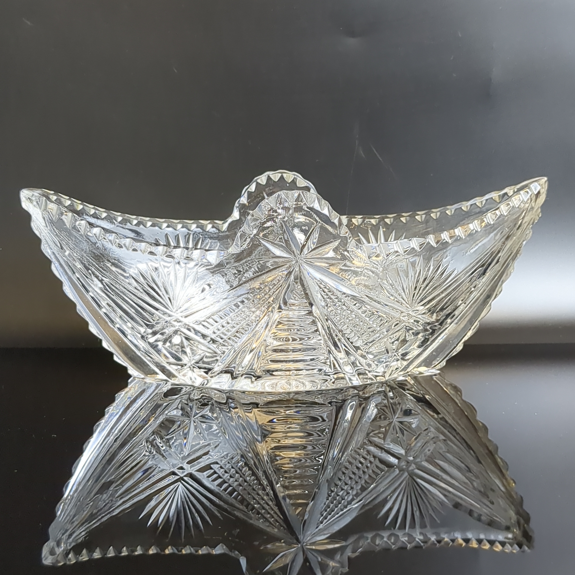 Ладья ваза хрустальная для сервировки, алмазная грань, геометрический орнамент, винтаж СССР 1970-1990 гг. Длина - 24 см.