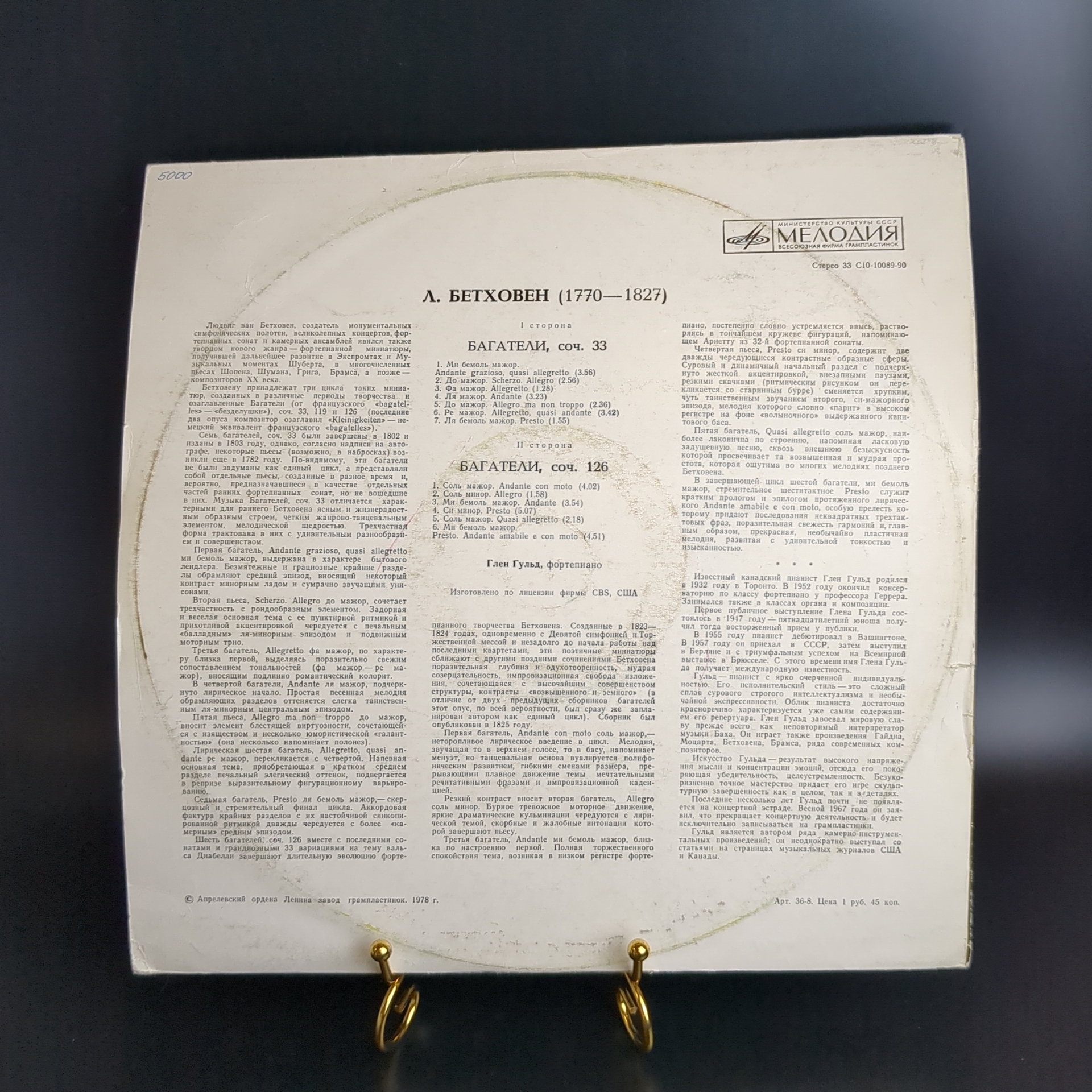 Л. Бетховен виниловая пластинка 12 дюймов Багатели,соч. 33/Багатели,соч.126, Глен Гульд, фортепиано, LP мелодия, винтаж СССР 1978 год. Классическая музыка на виниле. Конверт: VG Диск: EX