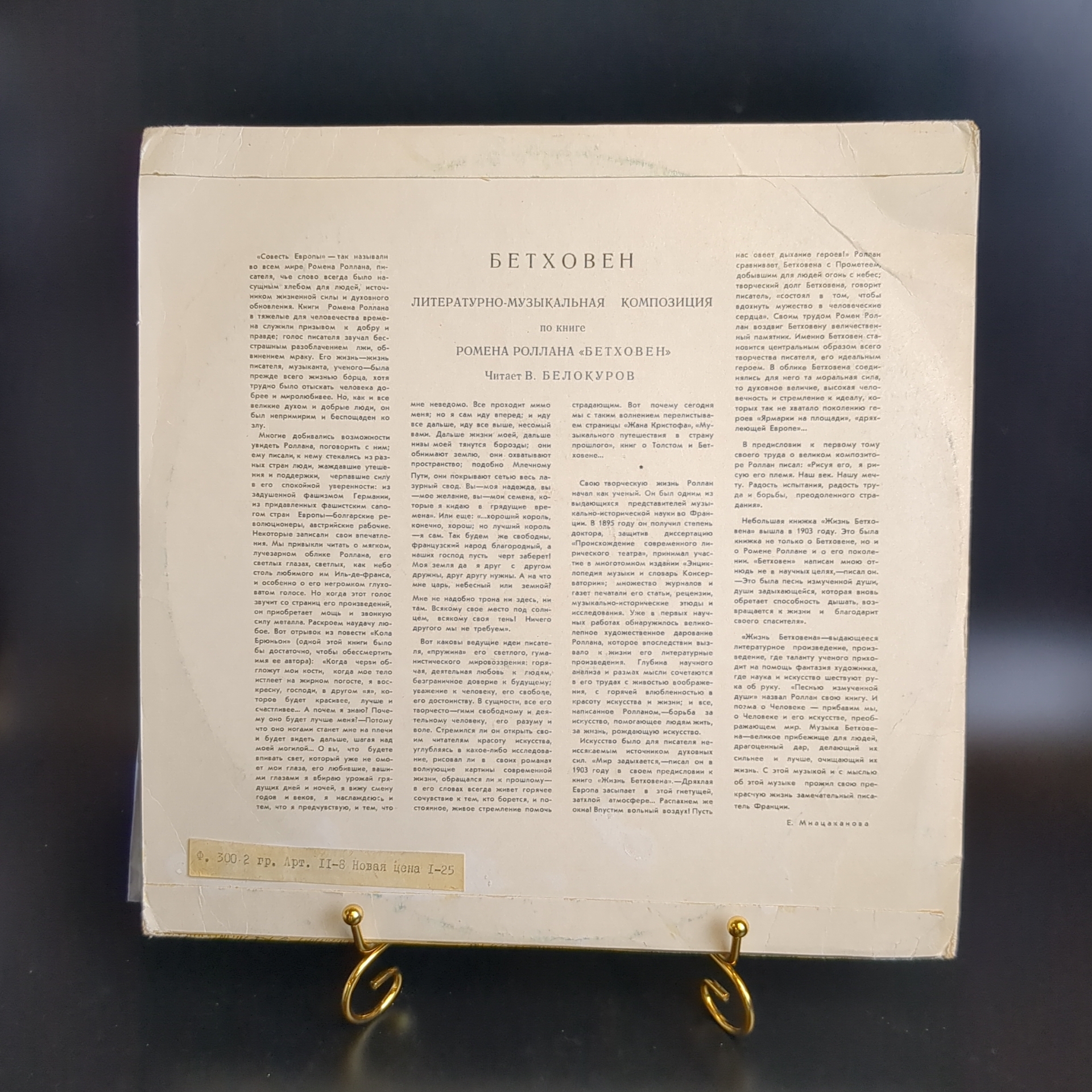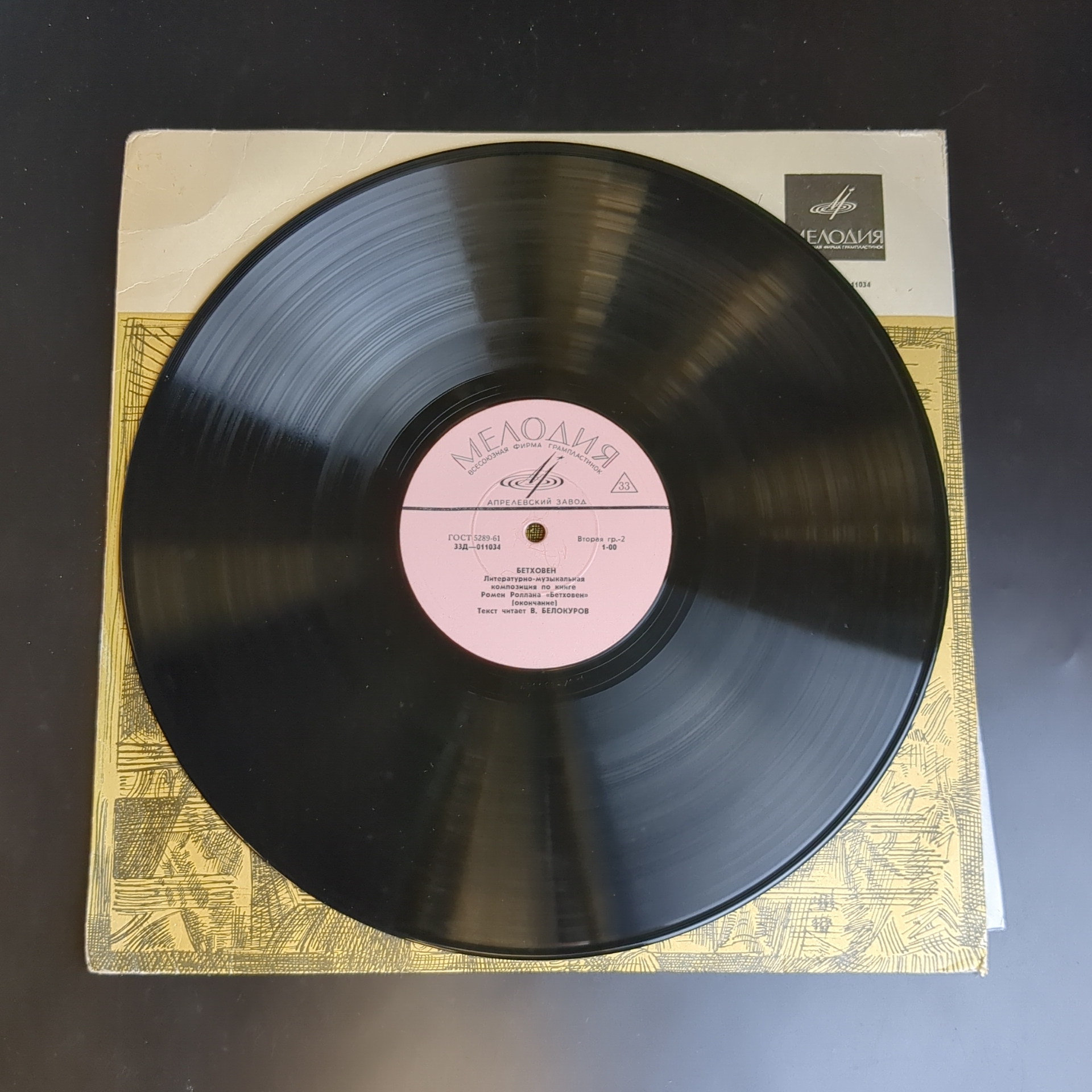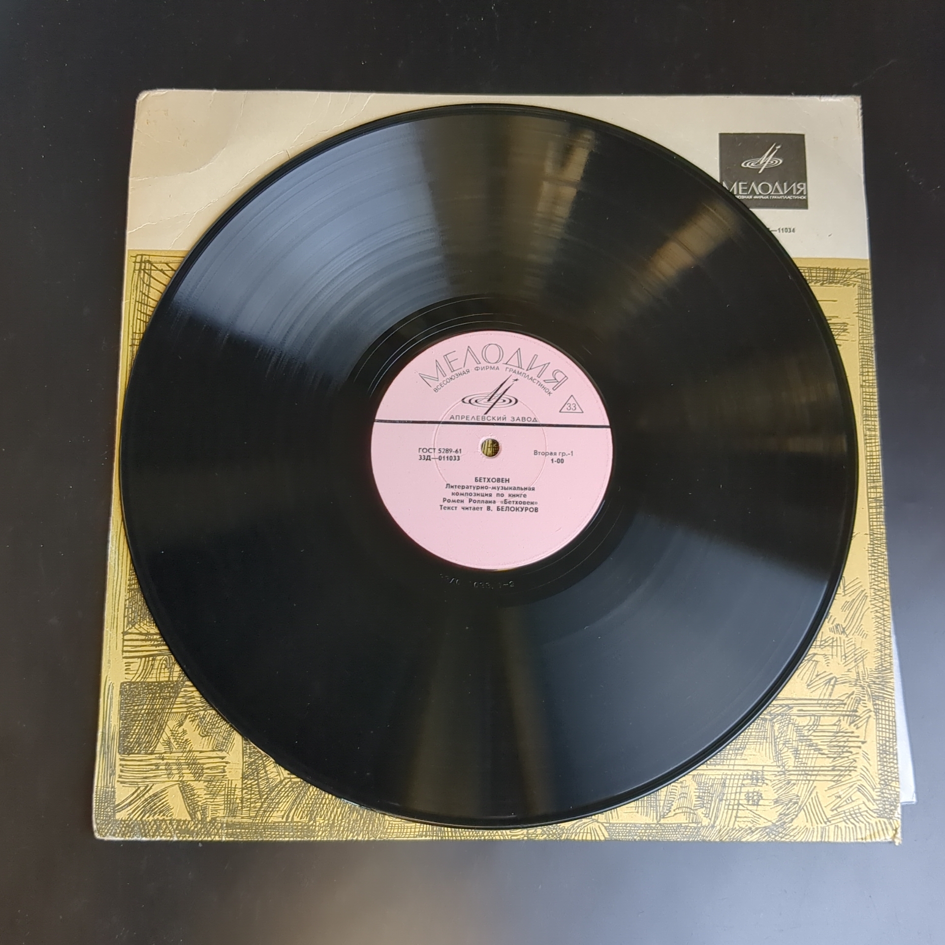 Л.Бетховен виниловая пластинка 12 дюймов литературно-музыкальная композиция по книге Ромена Роллана "Бетховен", читает В.Белокуров,