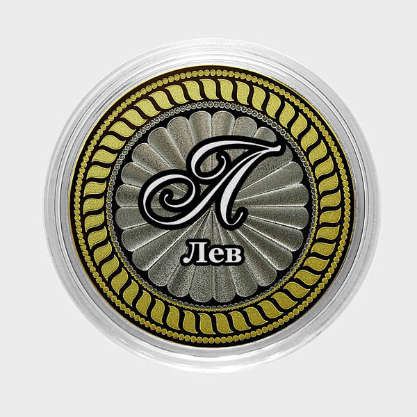 Сувенирная монета "Лев" номиналом 10 рублей с выгравированным изображением.