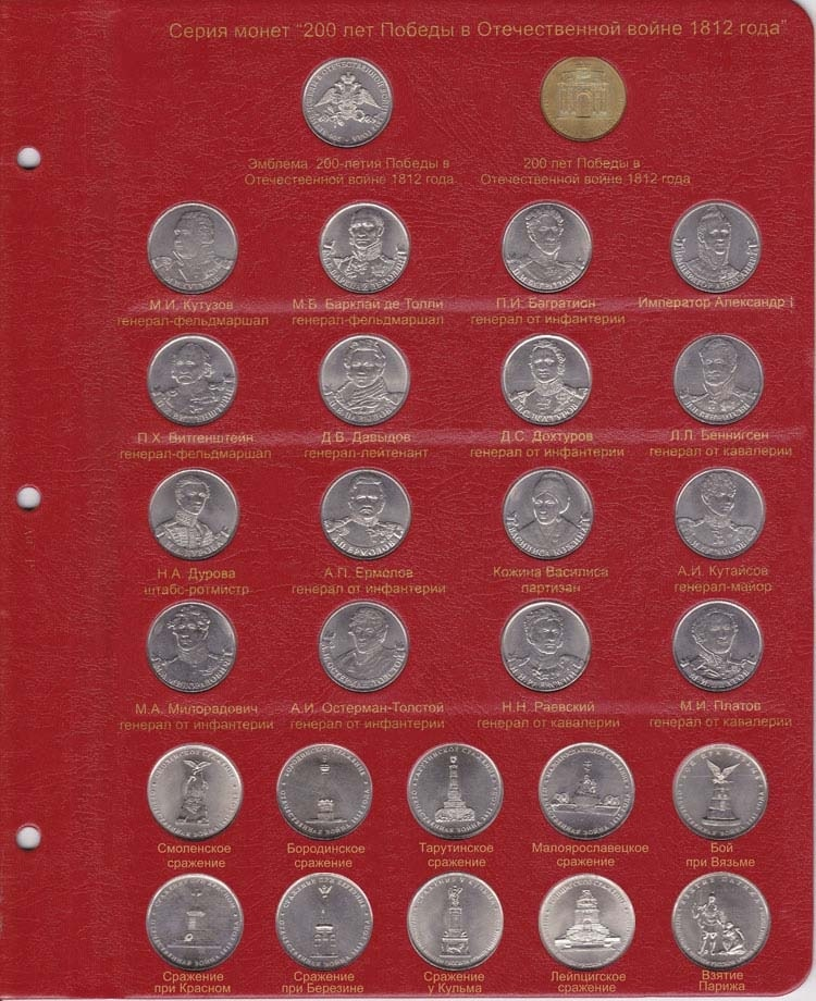 Лист для монет серии "200 лет Победы в Отечественной войне 1812 г." КоллекционерЪ.