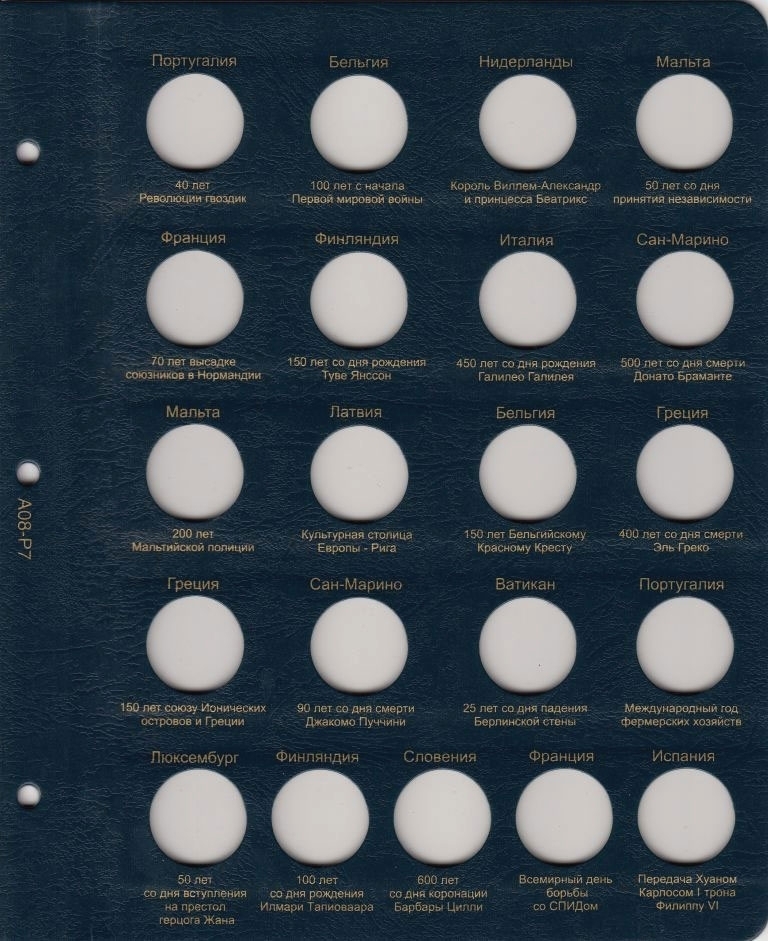 Лист включает в себя 21 ячейку для монет 2014 года: