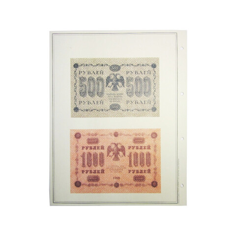 Лист тематический для банкнот 500,1000 рублей 1918 г. (картон с холдером) GRAND 243*310