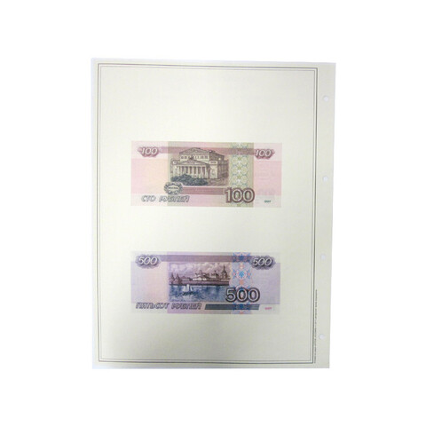 Лист тематический для банкнот РОССИИ 100,500 рублей 1997 г. Без модификации. (картон с холдером) GRAND 243*310