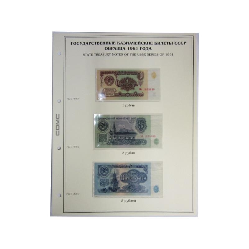 Лист тематический для банкнот СССР 1,3,5 рублей 1961 г. (картон с холдером) GRAND 243*310