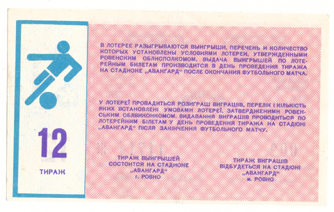 Лотерейный билет Ровно Авангард 1988 12 выпуск
