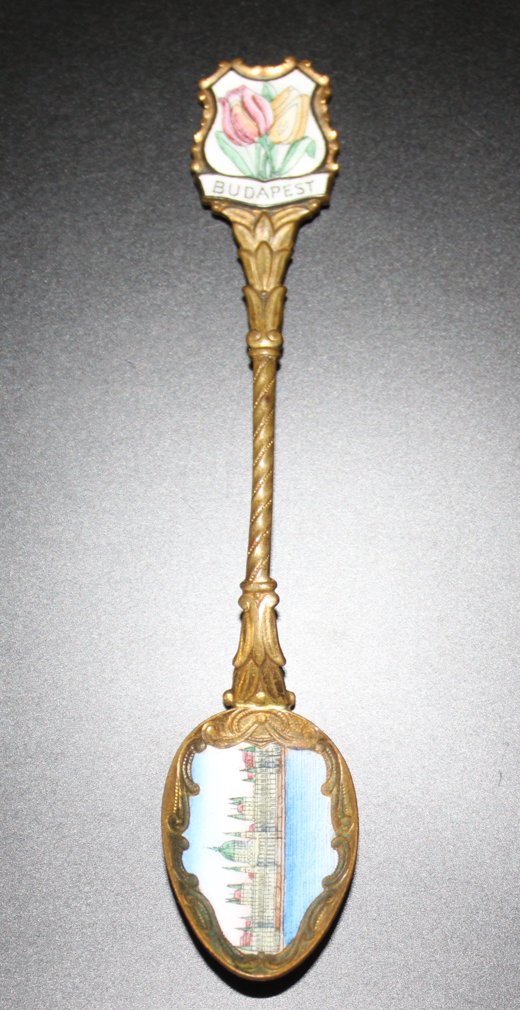 Ложечка чайная сувенирная. Будапешт. Металл, золочение, эмаль. XF