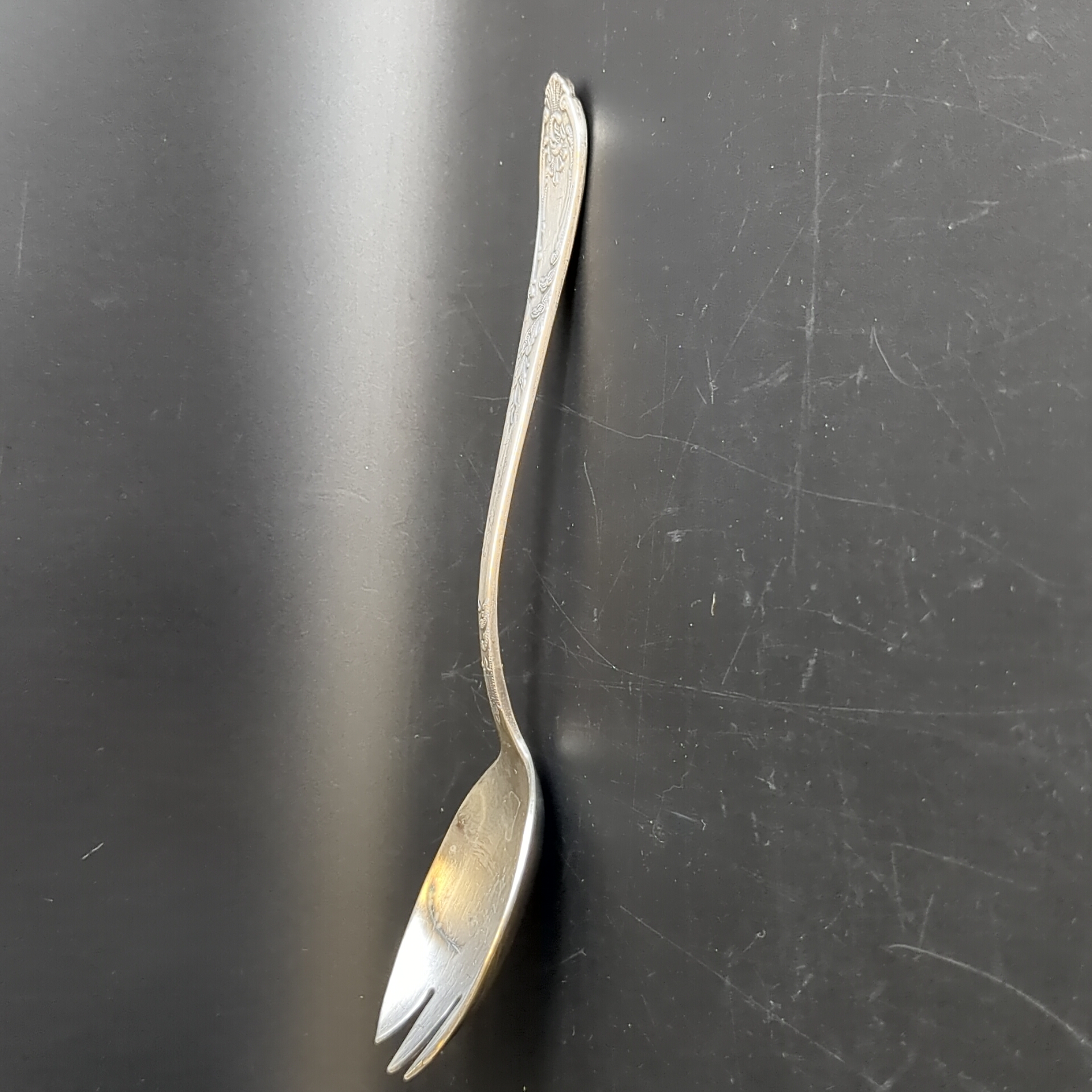 Ложка салатная, украшенных цветочным декором, мНЦ (медь-никель-цинк), Вольнянский завод столовых приборов им. Шевченко (ЗiШ, ЗиШ), СССР, 1960-1990 гг.