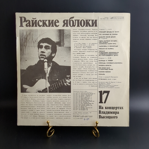 LP 17 Выпуск Владимир Высоцкий - Райские яблоки, виниловая пластинка 12 дюймов , На концертах Владимира Высоцкого Мелодия СССР 1991 год