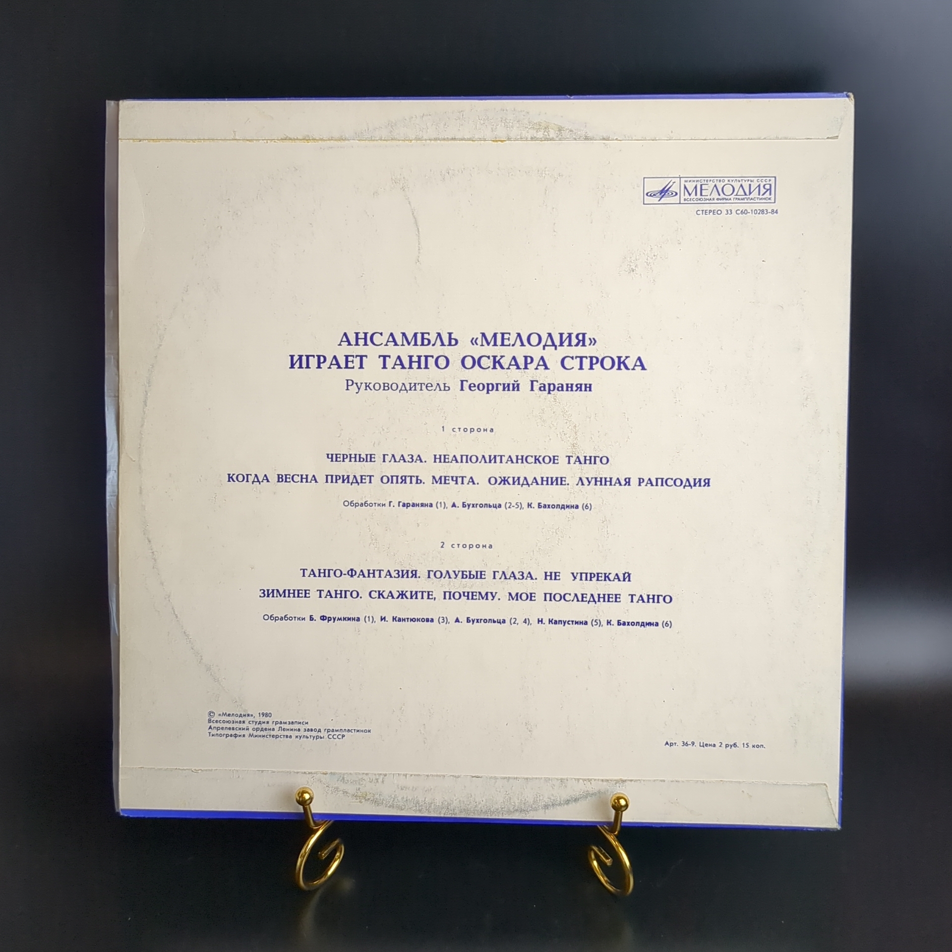 LP Ансамбль "Мелодия" играет танго Оскара Строка. Виниловая пластинка 12 дюймов , Мелодия СССР 1980 год