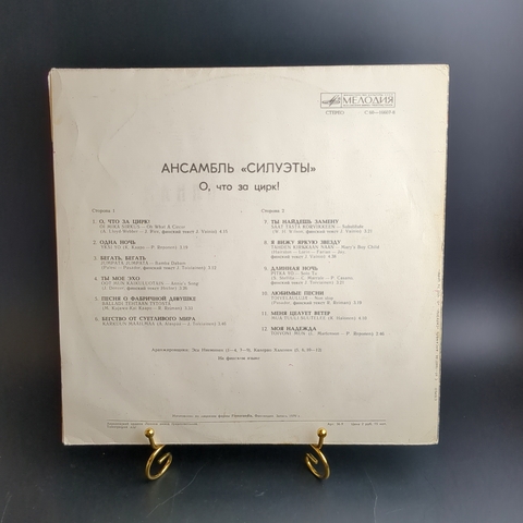 LP Ансамбль Силуэты - О, что за цирк. Виниловая пластинка 12 дюймов. Мелодия СССР 1979 год. Лицензия Финляндия