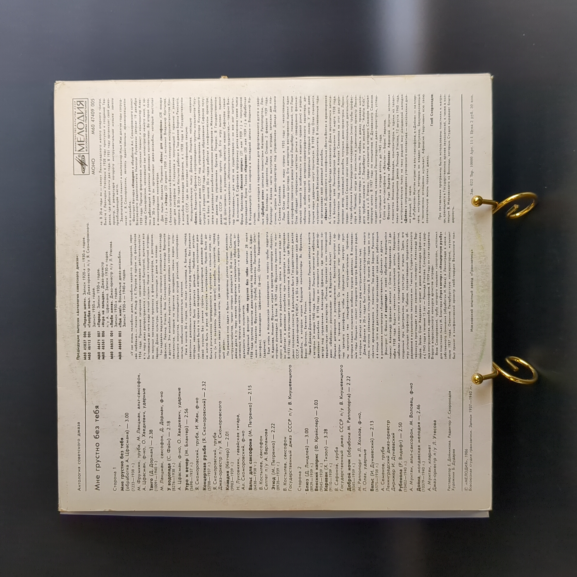 LP Антология советского джаза - Мне грустно без тебя. Виниловая пластинка 12 дюймов. Мелодия СССР 1986 год.