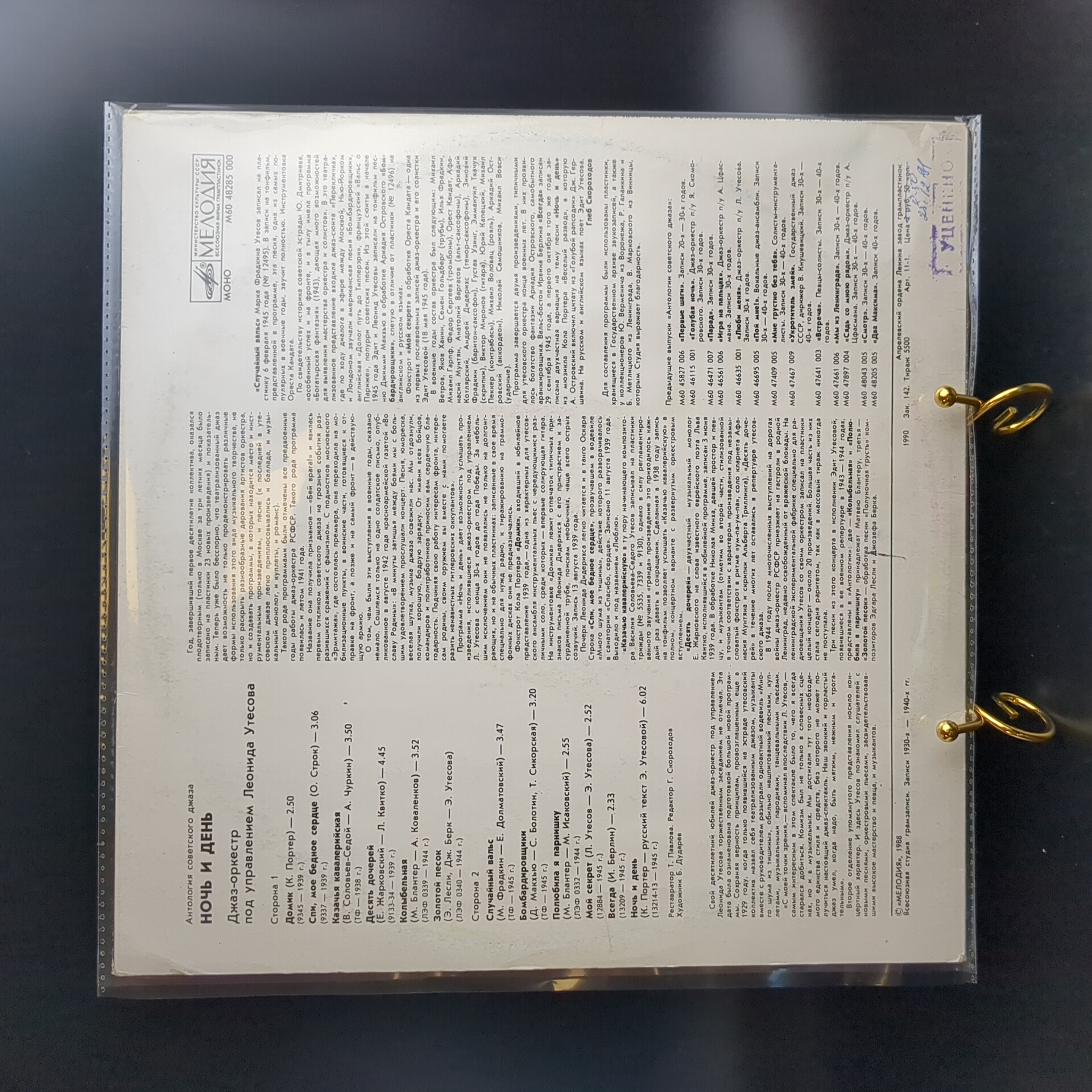 LP Антология советского джаза виниловая пластинка 12 дюймов, Ночь и День, джаз - оркестр под управлением Леонида Утесова, LP CCCР Мелодия 1988 год