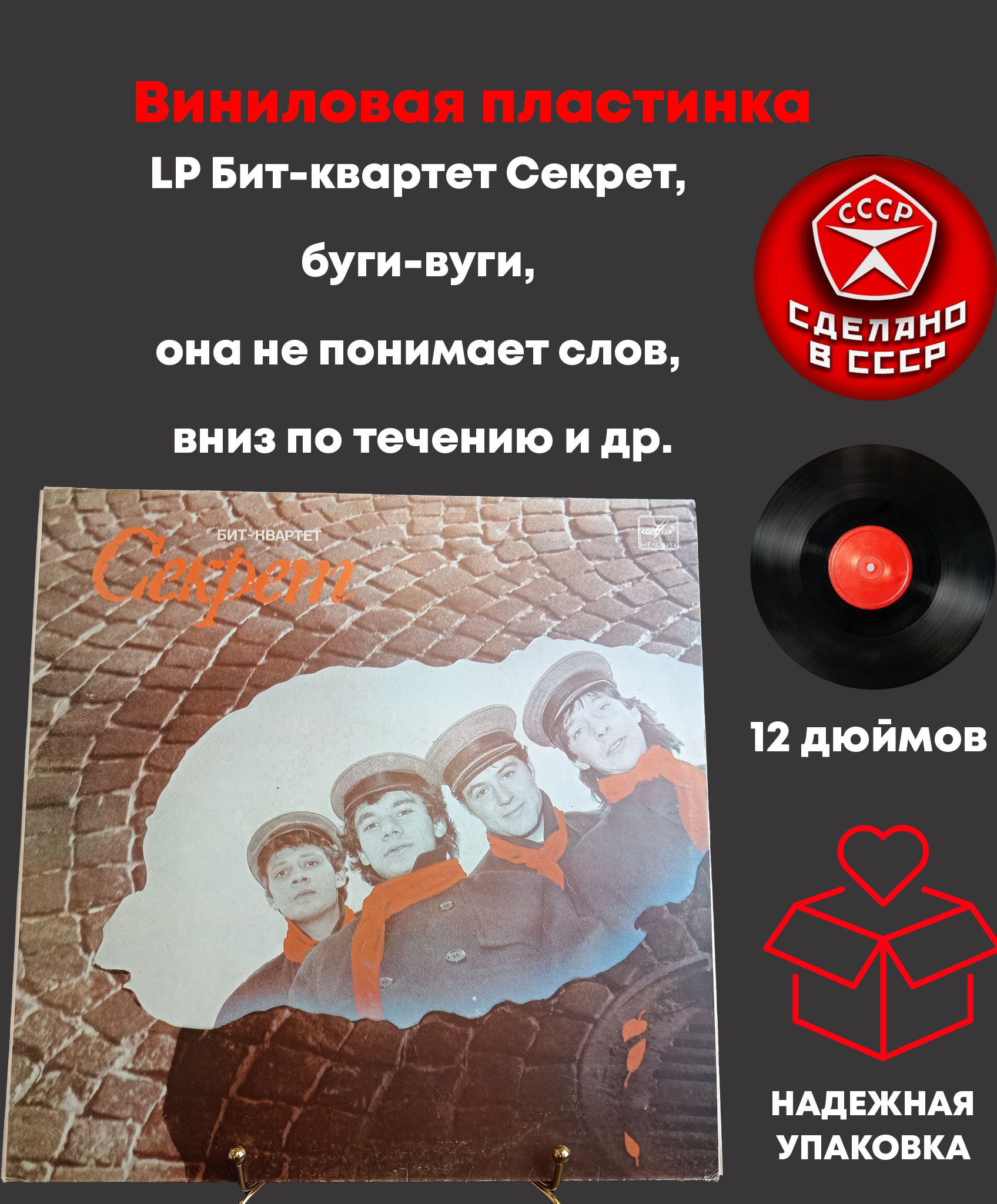 LP Бит-квартет Секрет, (буги-вуги/ она не понимает слов/ вниз по течению и др.), Виниловая пластинка 12 дюймов Мелодия СССР 1987 год . Конверт EX / Диск EX-