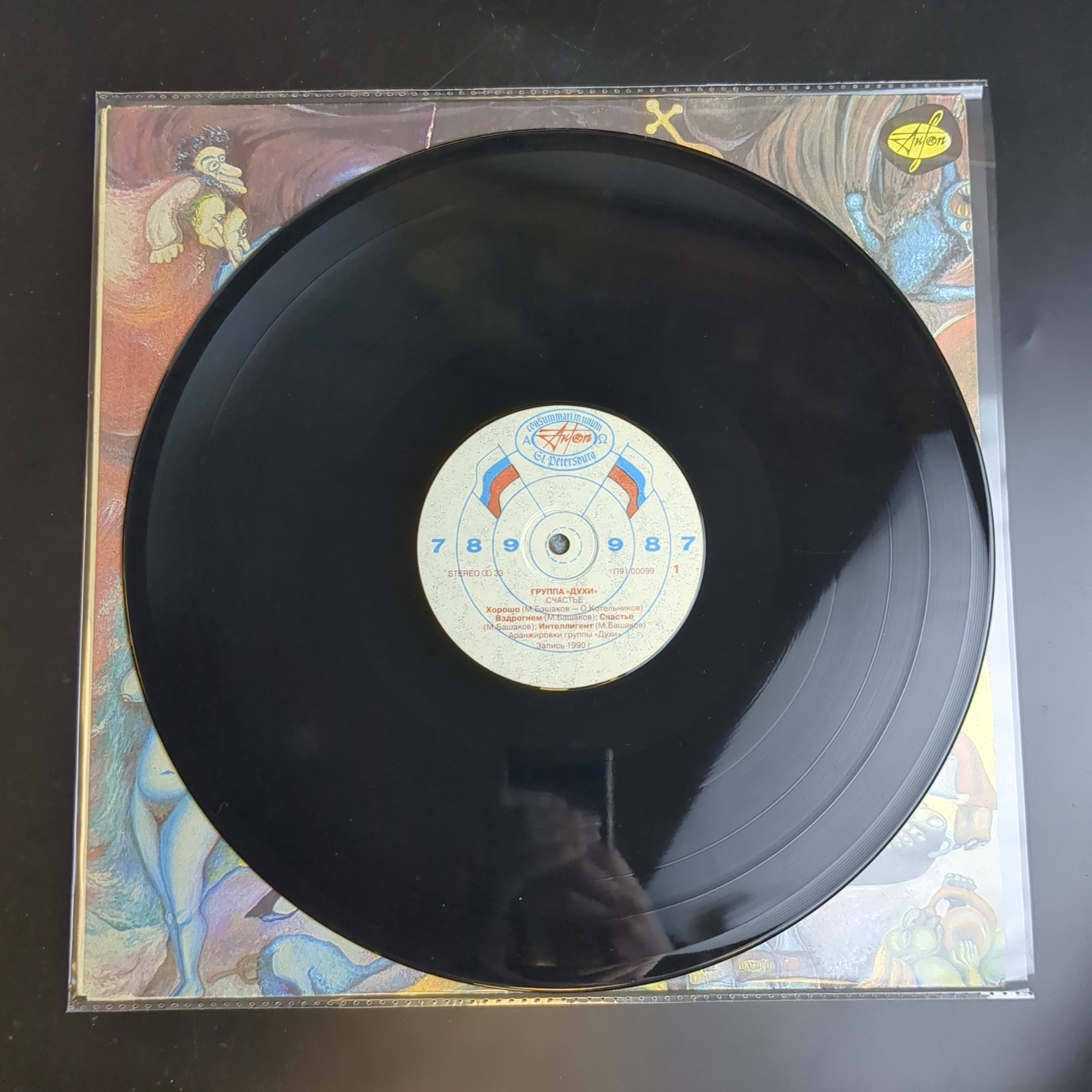 LP Духи ‎– Счастье. М.Башаков, В. Дух, П. Кашин. Русский рок. Антроп 1991 год. Конверт EX / Диск EX. Конверт EX / Диск VG