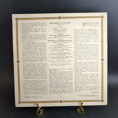 LP Евангелие от Матфея - Главы 1-13(стих 30), читает В. Зозулин, ком-ыя Красавиной. Винилова пластинка 12 дюймов. Мелодия СССР. 1991 год