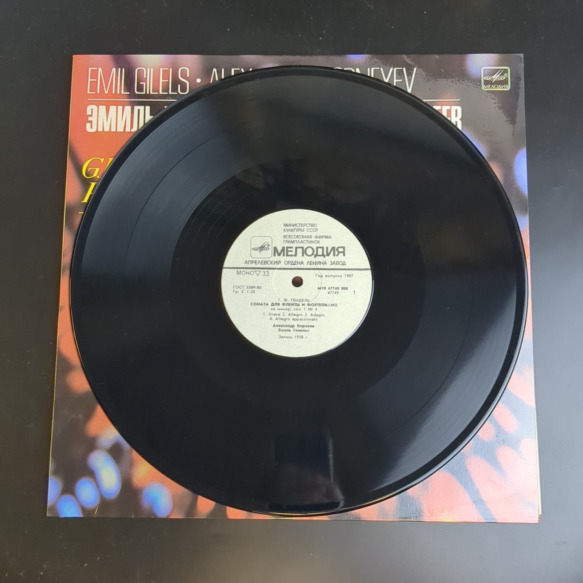 LP Г. Ф. Гендель. Соната для флейты и фортепиано ля минор, соч. 1 №4. Ф. Шуберт. Интродукция и вариации для флейты и фортепиано ми минор, соч. 160. Александр Корнеев, флейта. Эмиль Гилельс, фортепиано. Виниловая пластинка 12 дюймов. Мелодия СССР 1987 год. Классическая музыка на виниле. Конверт EX-. Диск EX