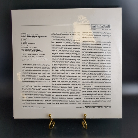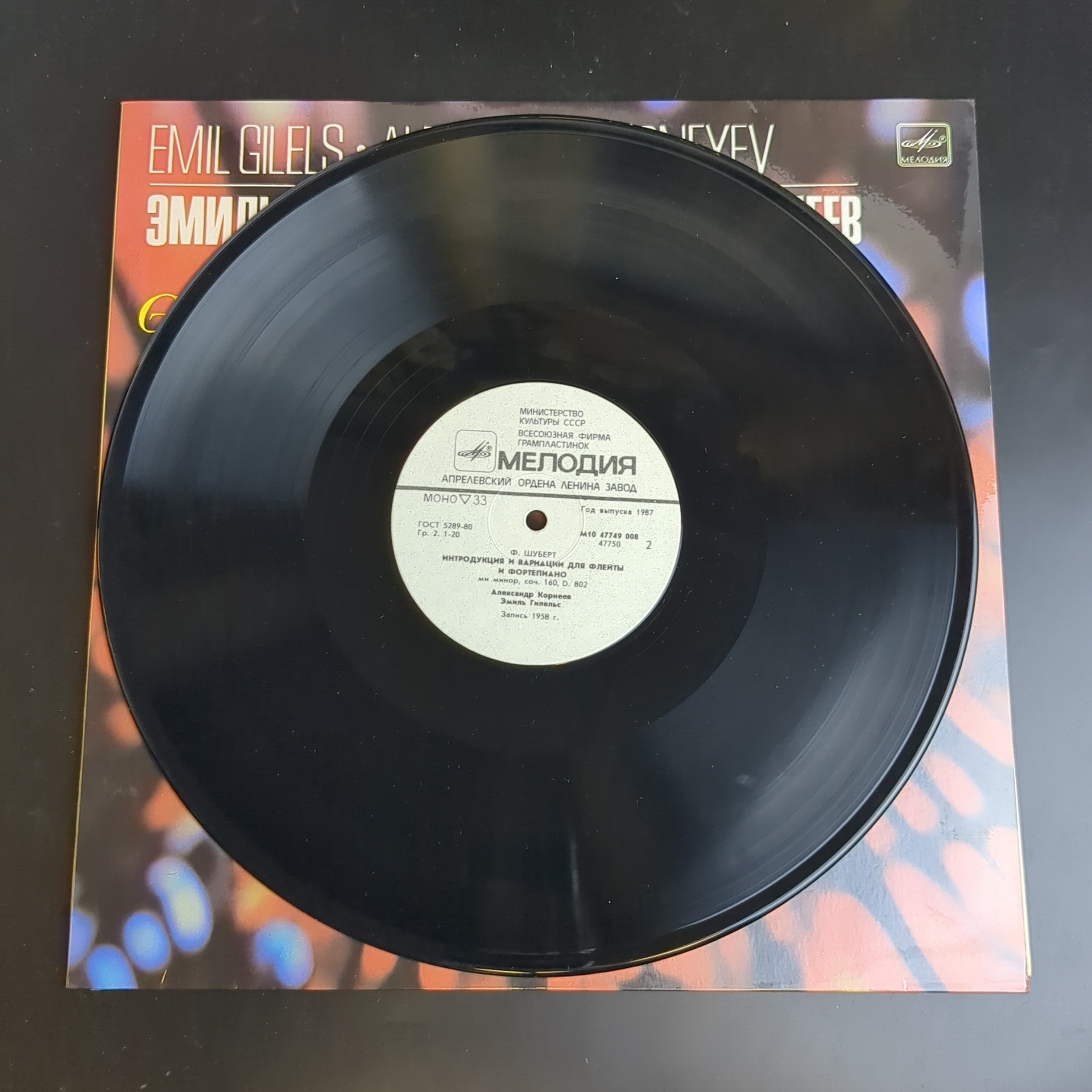 LP Г. Ф. Гендель. Ф. Шуберт. Александр Корнеев, флейта. Эмиль Гилельс, фортепиано. Виниловая пластинка 12 дюймов. Мелодия СССР 1987 год.