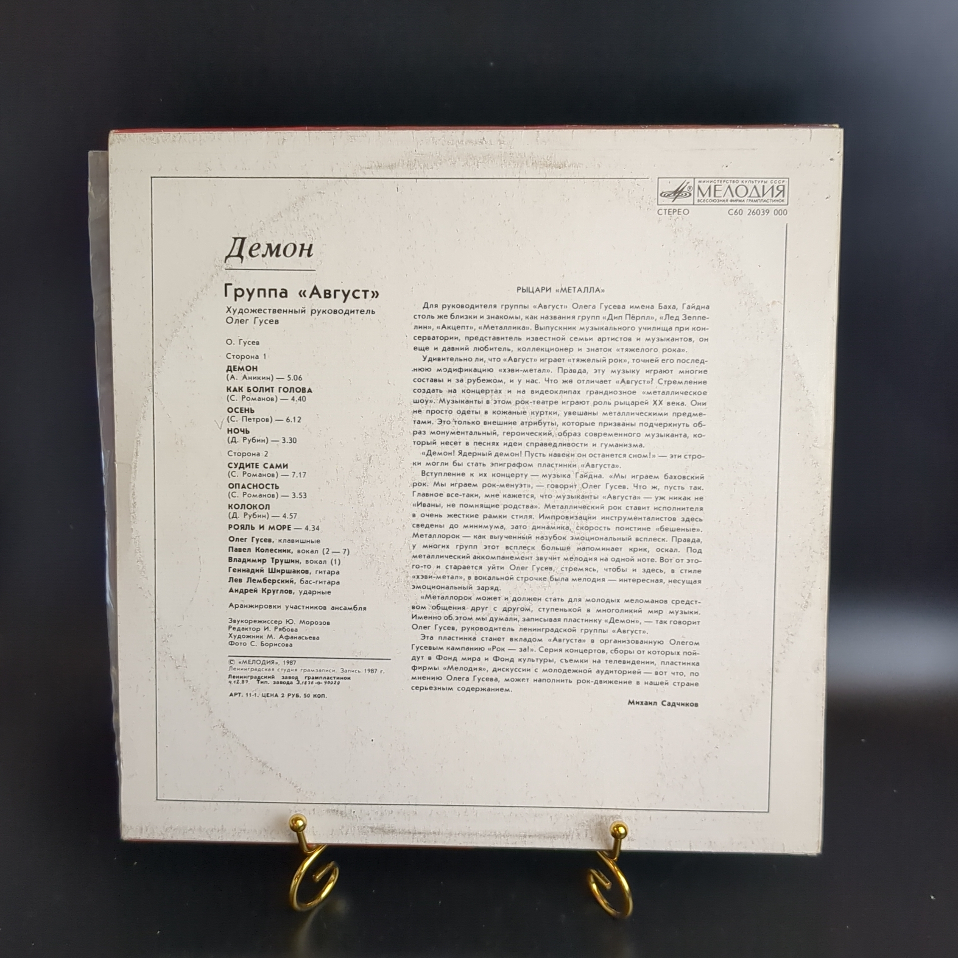 LP Группа Август - Демон, худ.руководитель Олег Гусев, Русский рок. виниловая пластинка 12 дюймов Мелодия СССР 1987 год. Конверт EX / Диск VG+