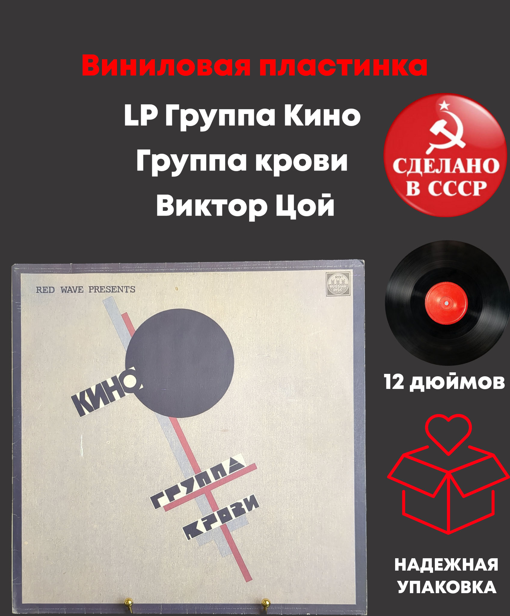 LP Группа Кино - Группа крови. Виктор Цой. Виниловая пластинка 12 дюймов Русский диск 1991 год. Конверт EX- / Диск EX