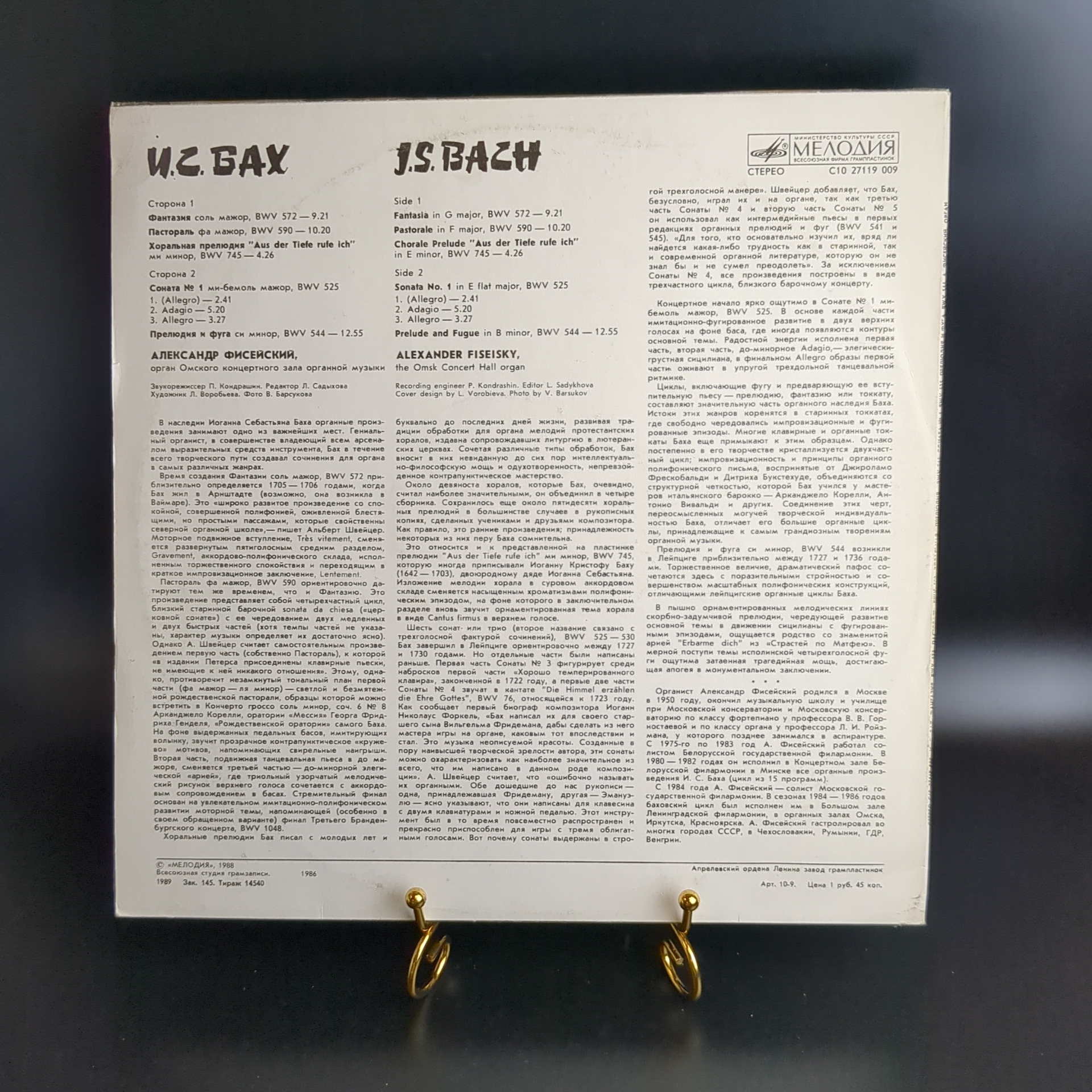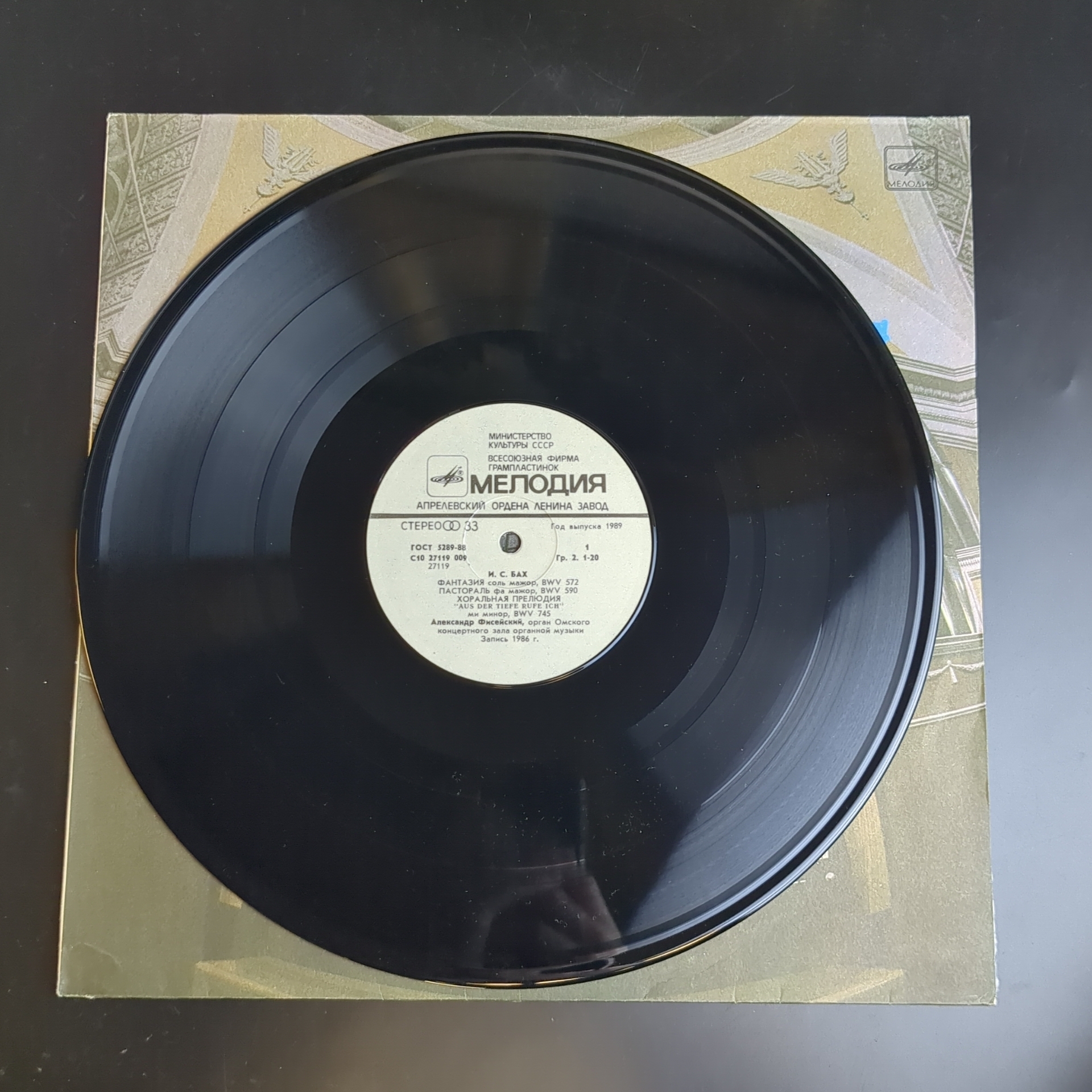 LP И. С. Бах. Фантазия соль мажор. Пастораль фа мажор. Хоральная прелюдия Aus der Tiefe rufe ich ми минор. Соната №1 ми-бемоль мажор. Прелюдия и фуга си минор. Виниловая пластинка 12 дюймов. Мелодия СССР 1988 год.