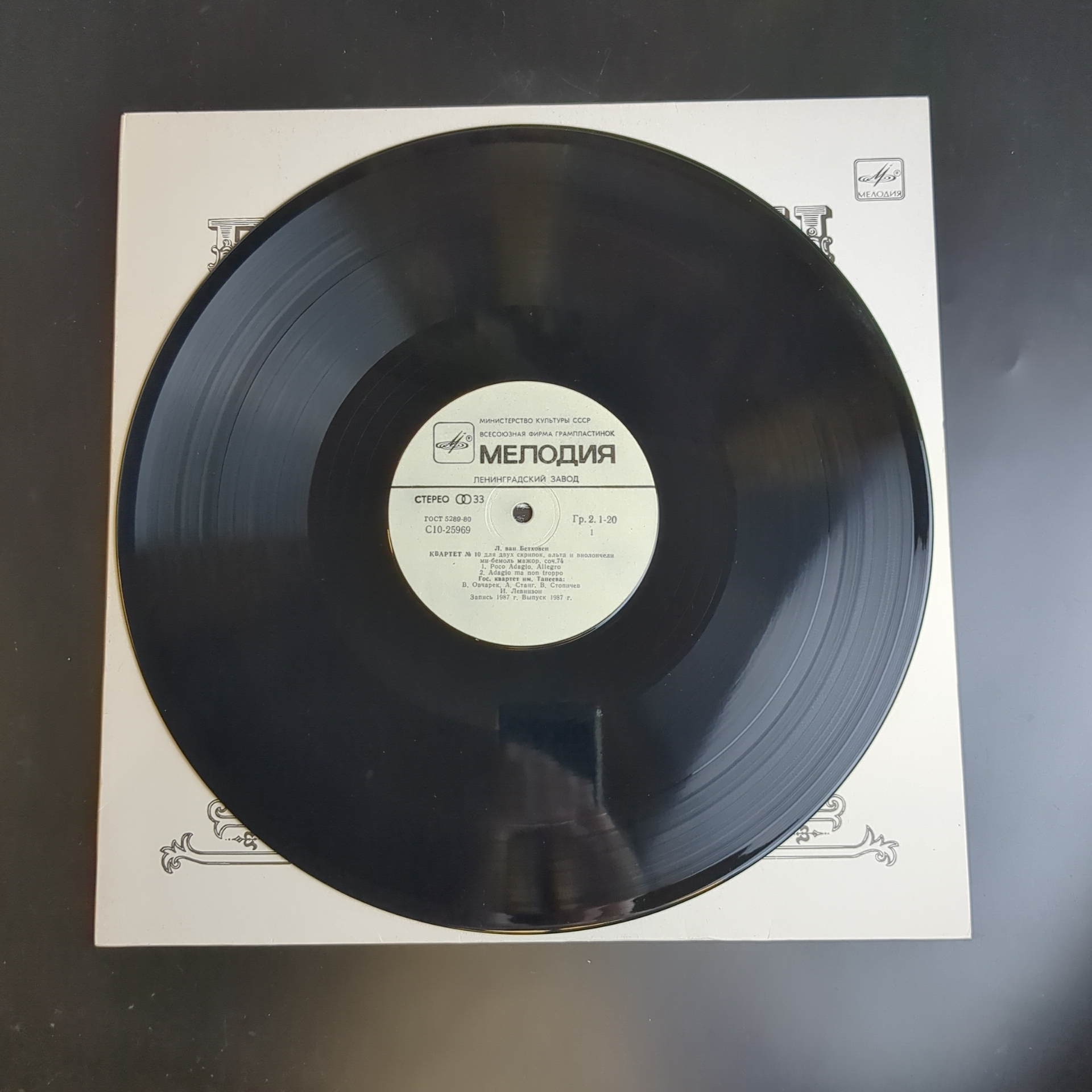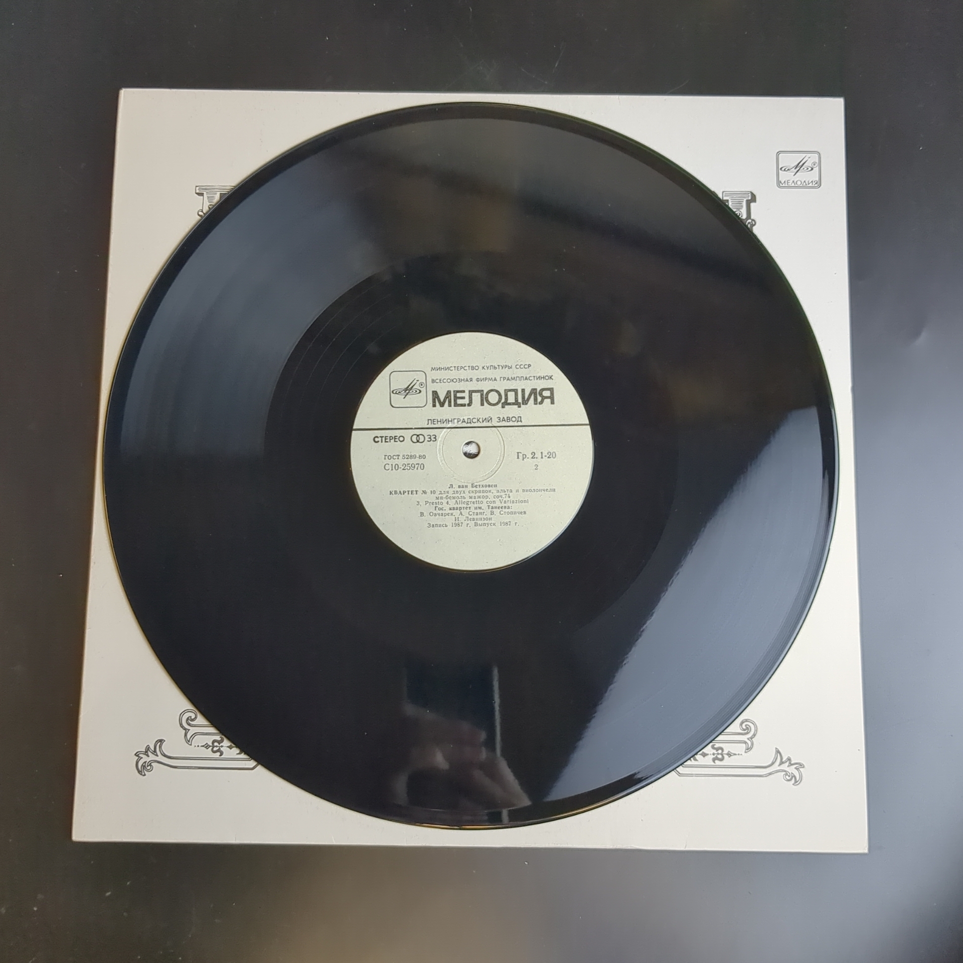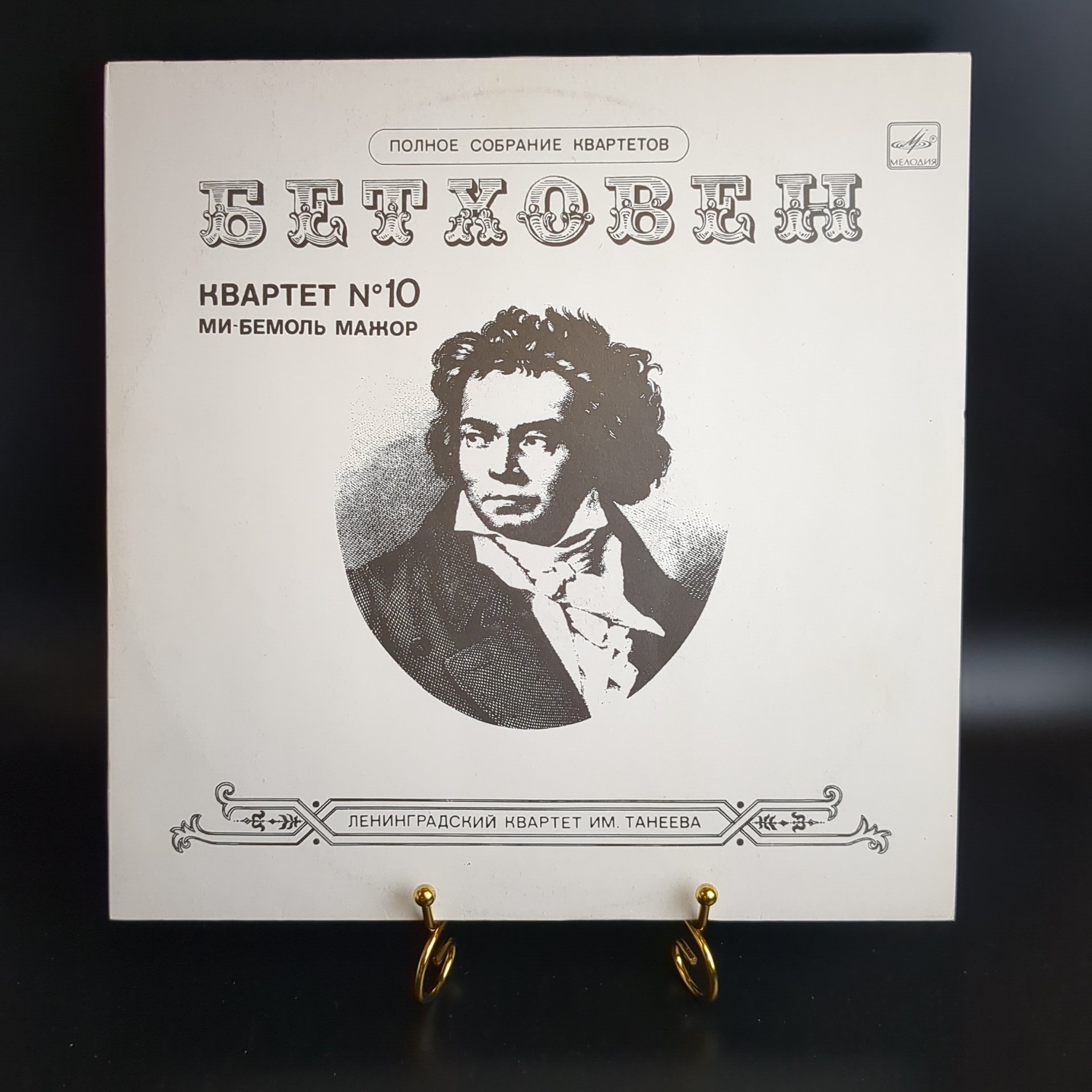 LP Л. Ван Бетховен. Квартет №10 для двух скрипок, альта и виолончели ми-бемоль мажор, соч. 74. Полное собрание квартетов. Ленинградский квартет им. Танееева. Виниловая пластинка 12 дюймов. Мелодия СССР 1987 год. Классическая музыка на виниле. Конверт EX. Диск EX