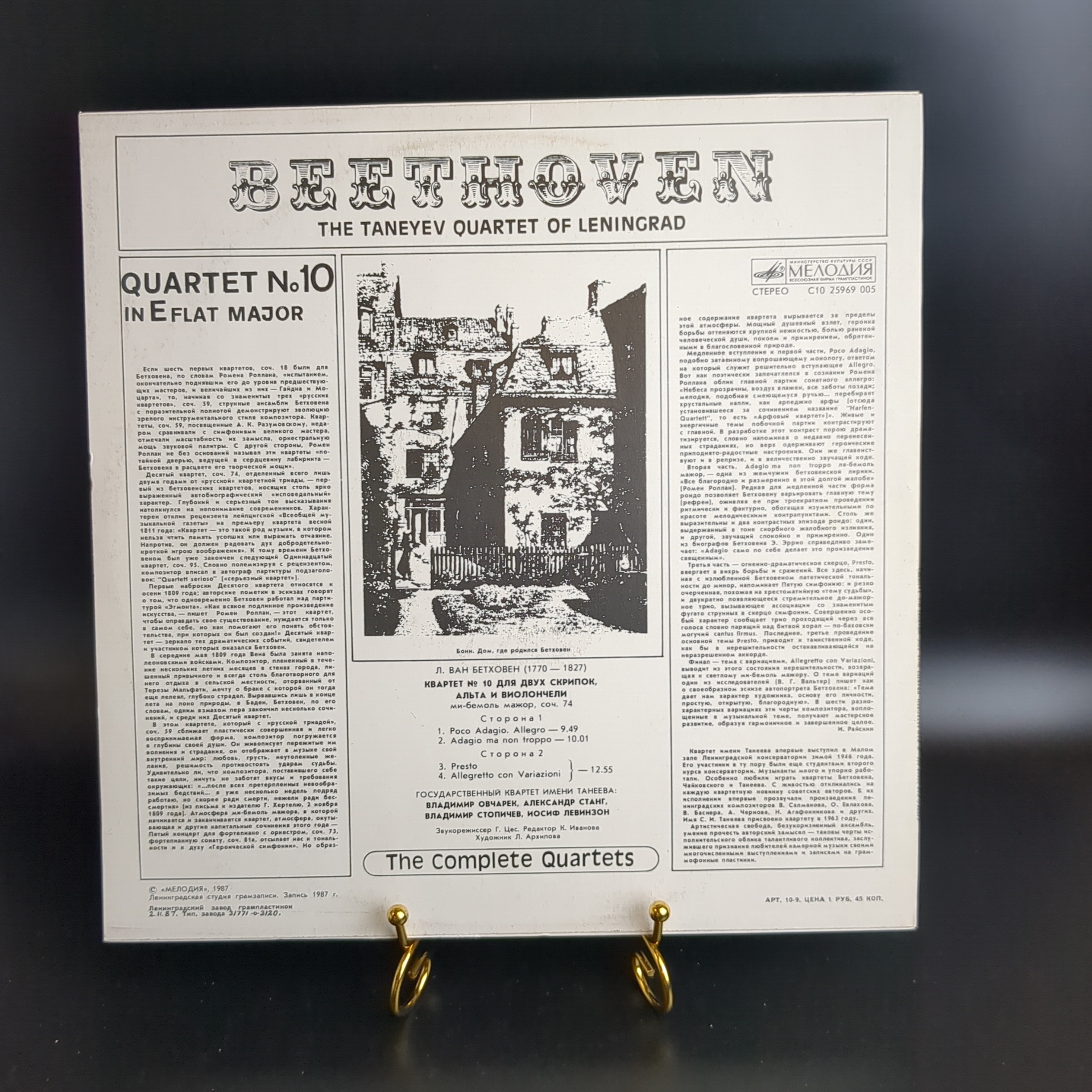 LP Л. Ван Бетховен. Квартет №10 для двух скрипок, альта и виолончели ми-бемоль мажор, соч. 74. Полное собрание квартетов. Ленинградский квартет им. Танееева. Виниловая пластинка 12 дюймов. Мелодия СССР 1987 год.