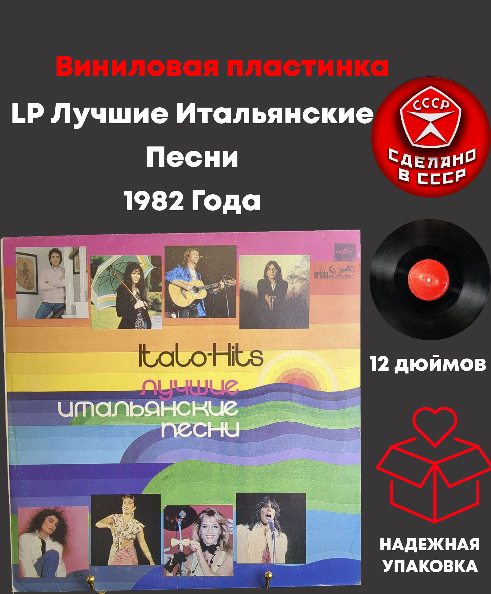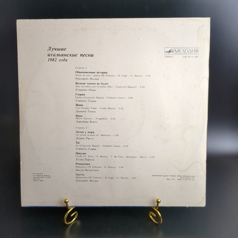 LP Лучшие Итальянские Песни 1982 Года. Виниловая пластинка 12 дюймов. Мелодия СССР 1982 год. Лицензия Мюнхен. Конверт EX / Диск EX