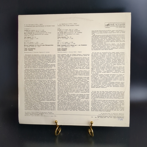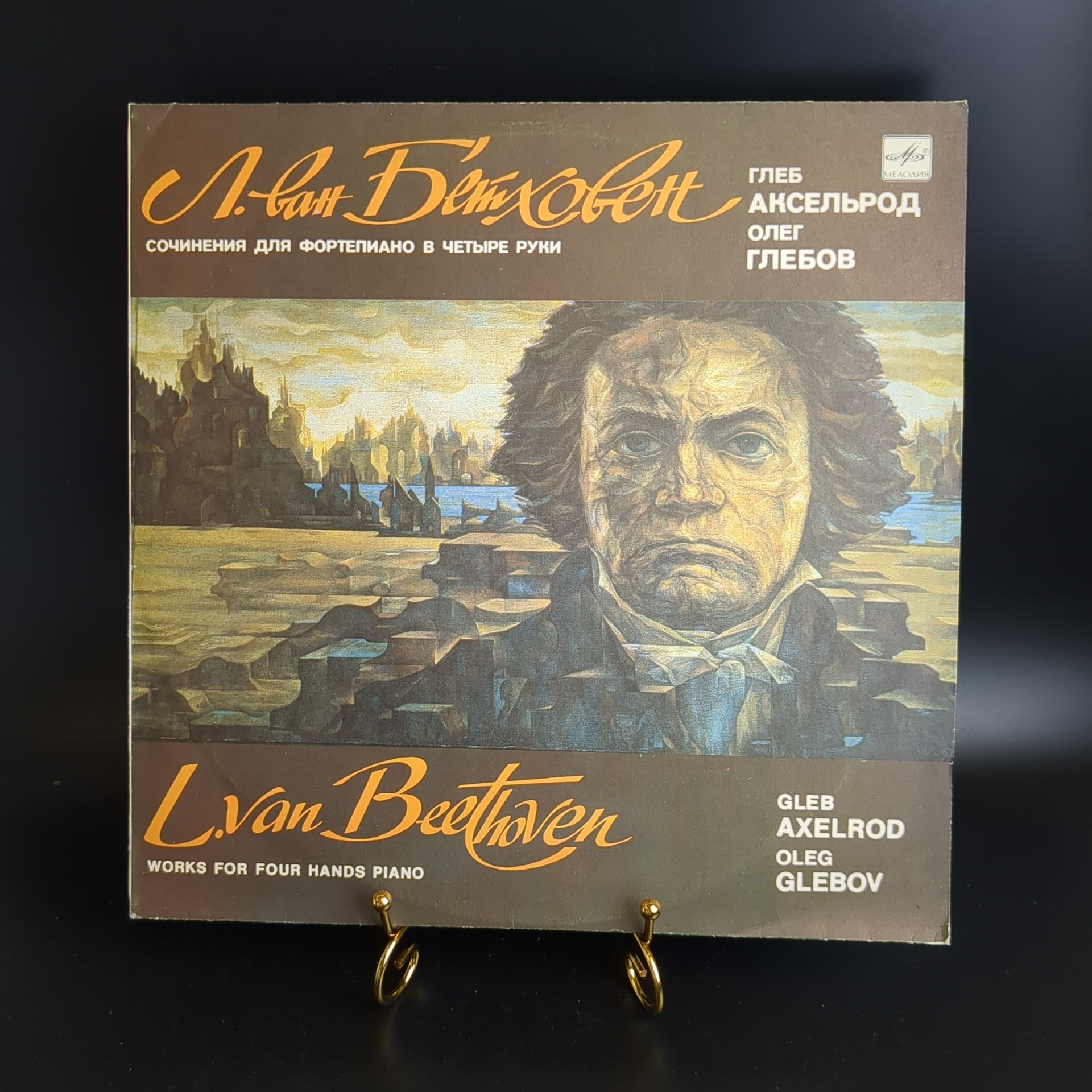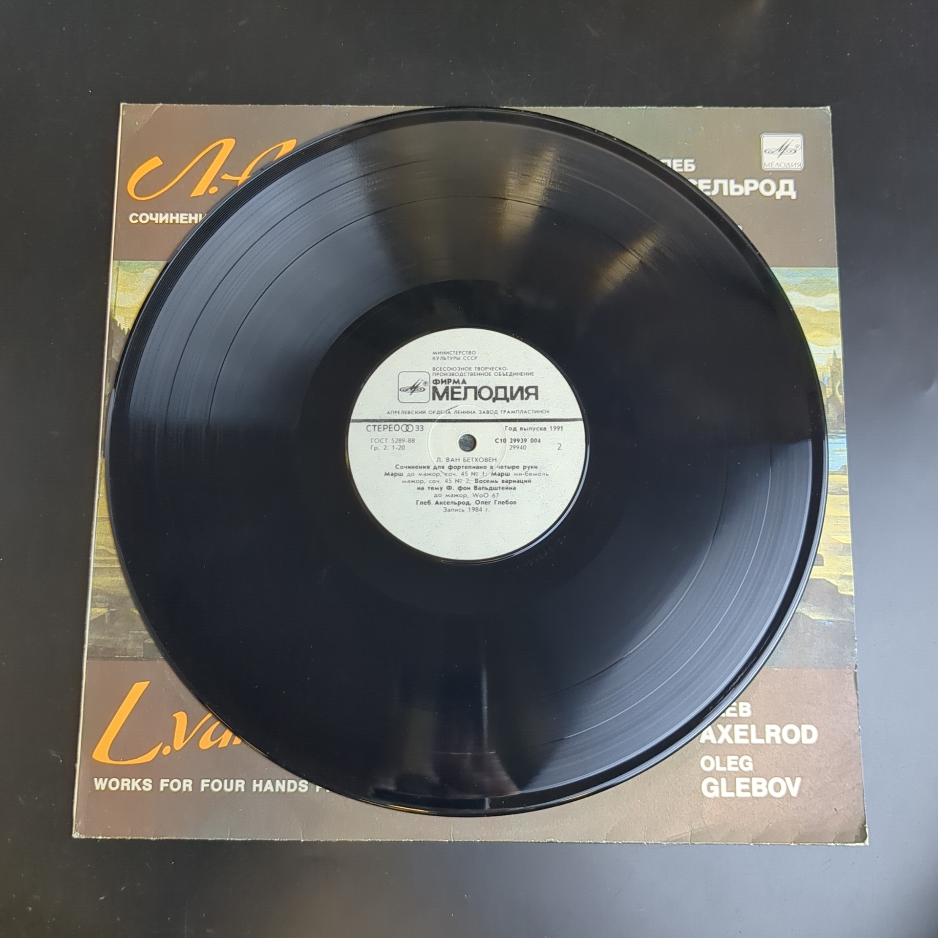 LP Л. Ван Бетховен виниловая пластинка 12 дюймов сочинения для фортепиано в четыре руки, Глеб Аксельрод, Олег Глебов, винтаж СССР Мелодия 1990 год. Классическая музыка на виниле. Конверт: EX Диск: EX