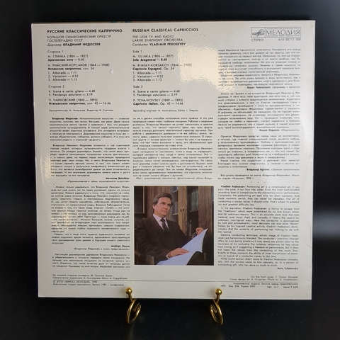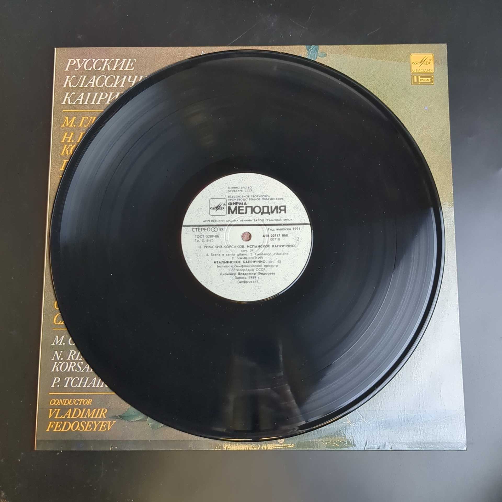LP М. Глинка. Арагонская хота. Н. Римский-Корсаков. Испанское каприччио, соч. 34. П. Чайковский. Итальянское каприччио, соч. 45. Русские классические каприччио. Большой симфонический оркестр Гостелерадио СССР. Дирижер В. Федосеев. Виниловая пластинка 12 дюймов. Мелодия СССР 1990 год. Классическая музыка на виниле. Конверт EX. Диск EX