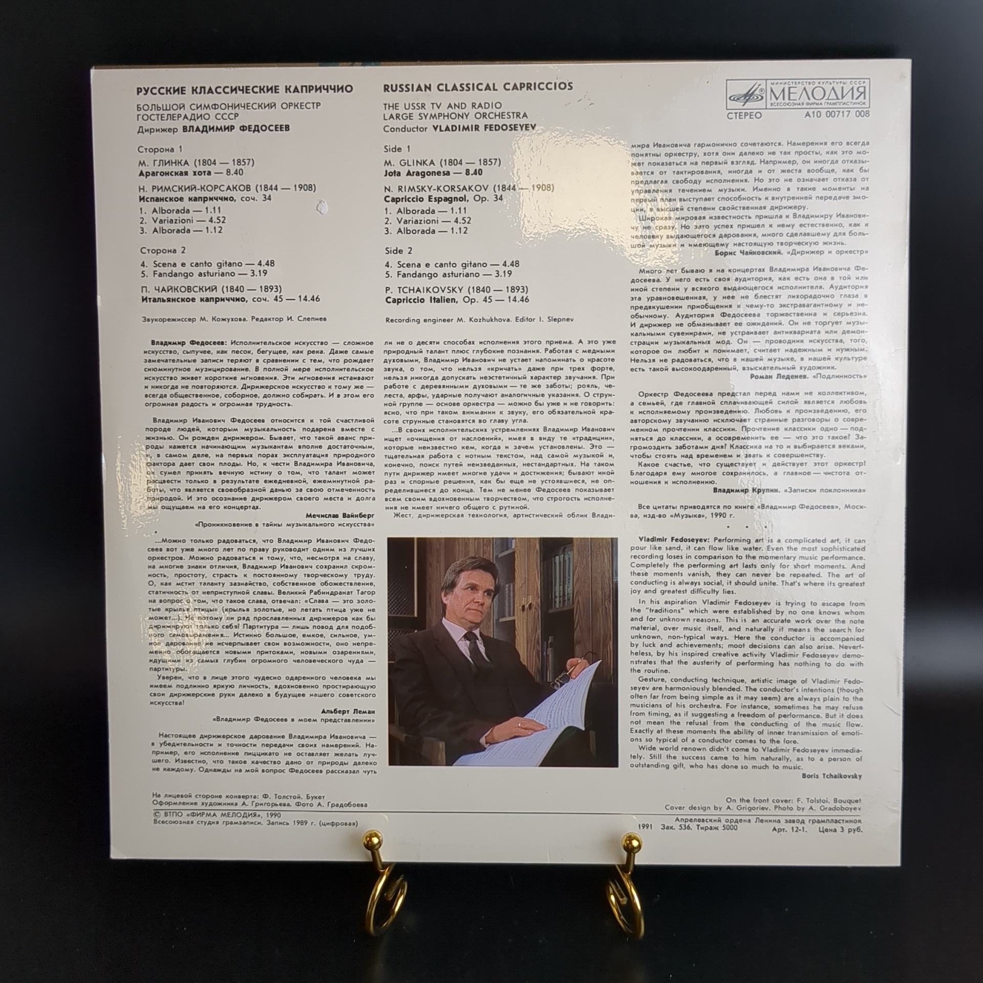LP М. Глинка. Н. Римский-Корсаков. П. Чайковский. Русские классические каприччио. Большой симфонический оркестр Гостелерадио СССР. Дирижер В. Федосеев. Виниловая пластинка 12 дюймов. Мелодия СССР 1990 год.