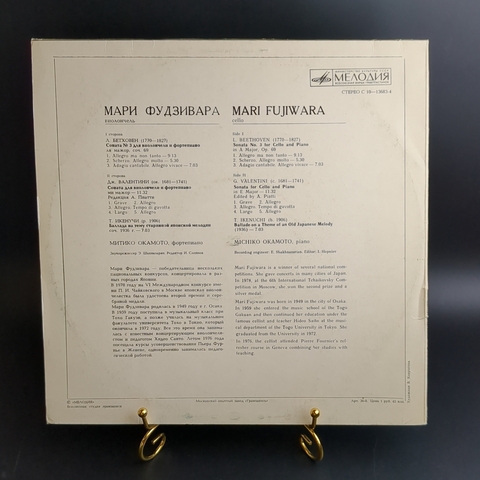 LP Мари Фудзивара - виолончель. Л. Бетховен. Дж. Валентинни, Т. Икенучи. Виниловая пластинка 12 дюймов. Мелодия СССР.